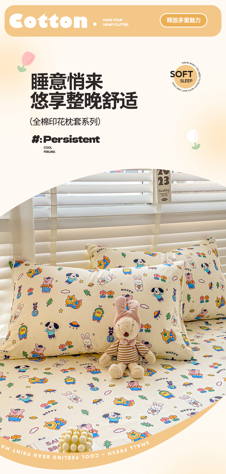 名兮家居 2023新款全棉简约印花枕套 动物派对