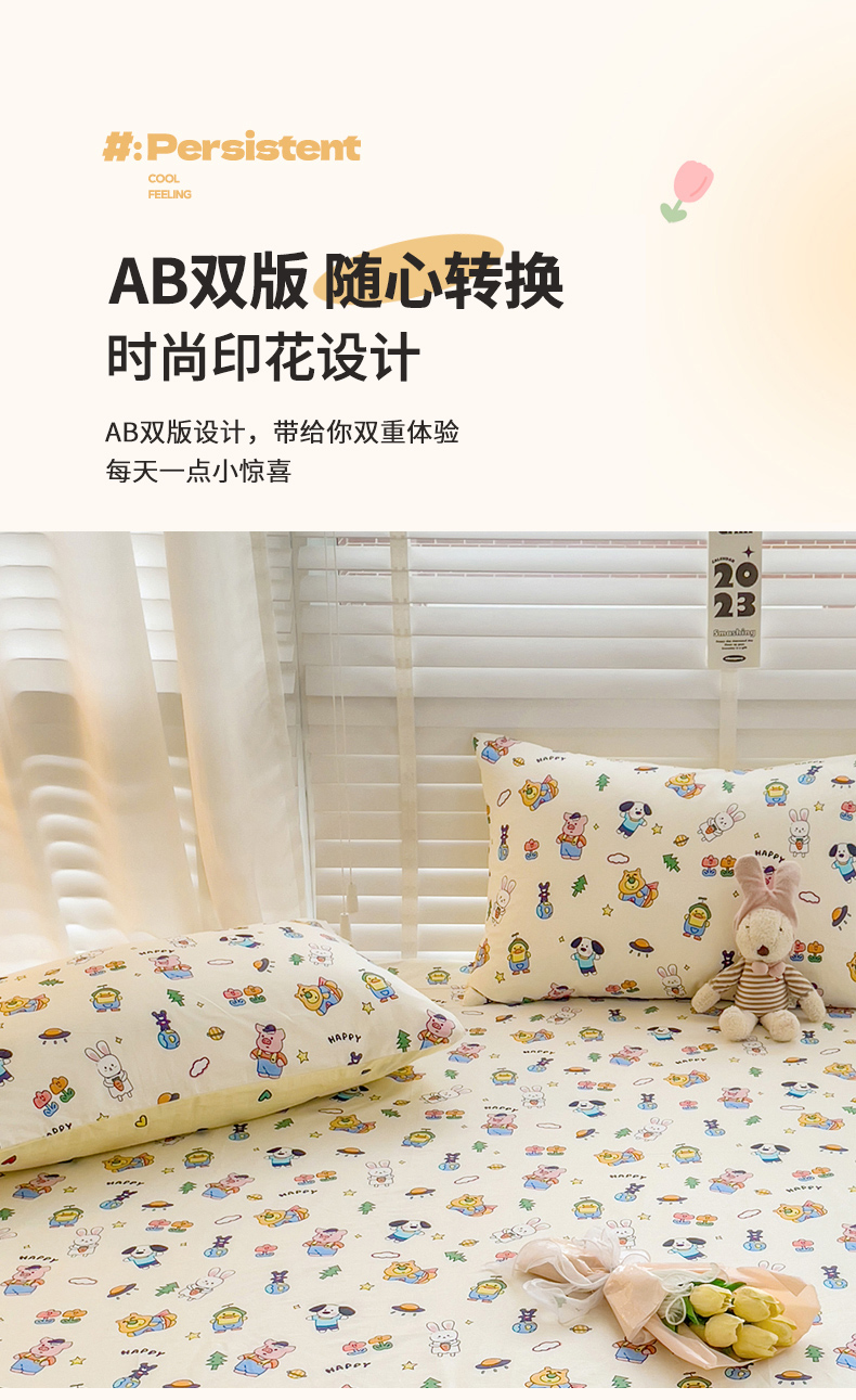 (总)名兮 2023新款全棉印花卡通风四件套,抱抱熊,波波熊,菲菲兔,机器小新,可爱萌宠,可爱兔