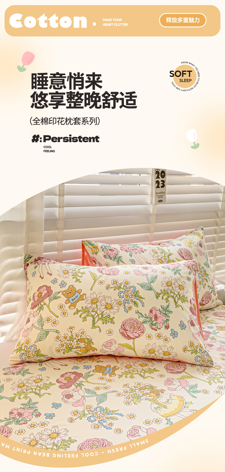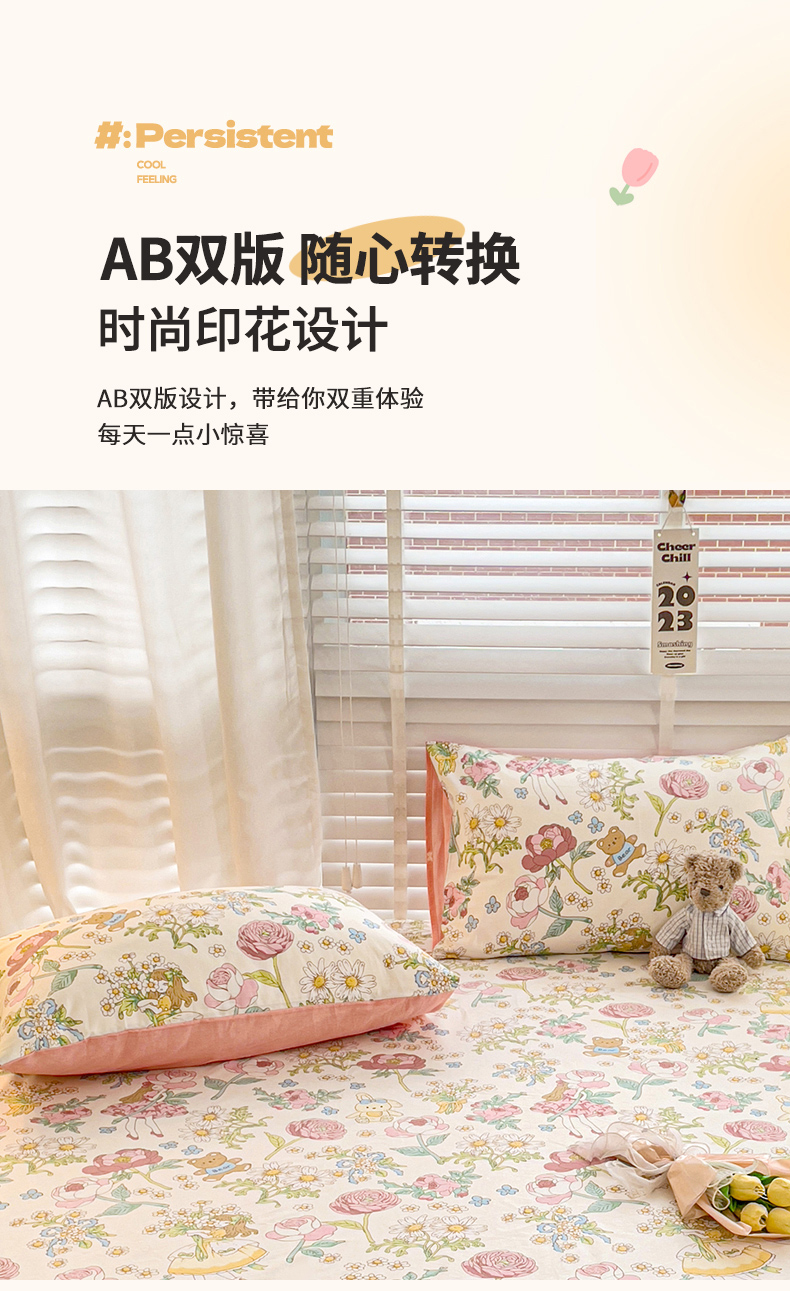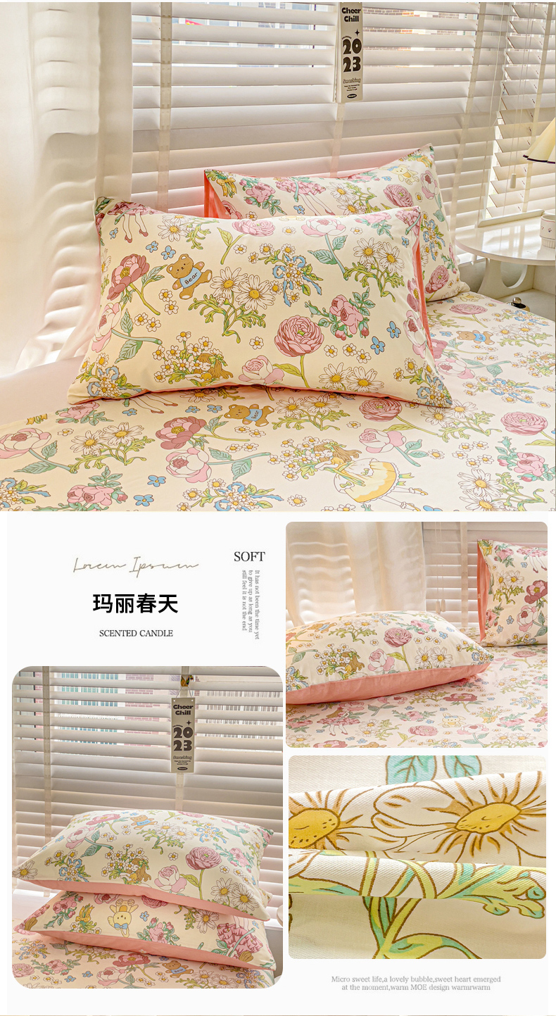 商品名称:名兮家居 2023新款全棉简约印花枕套 玛丽春天