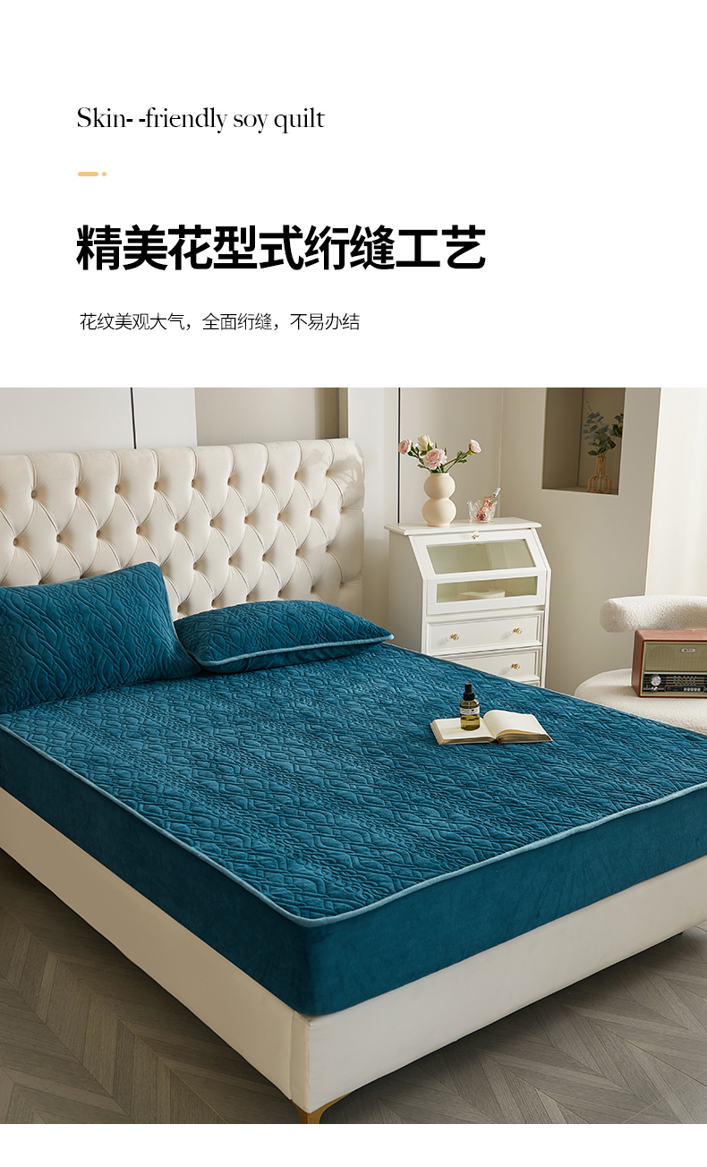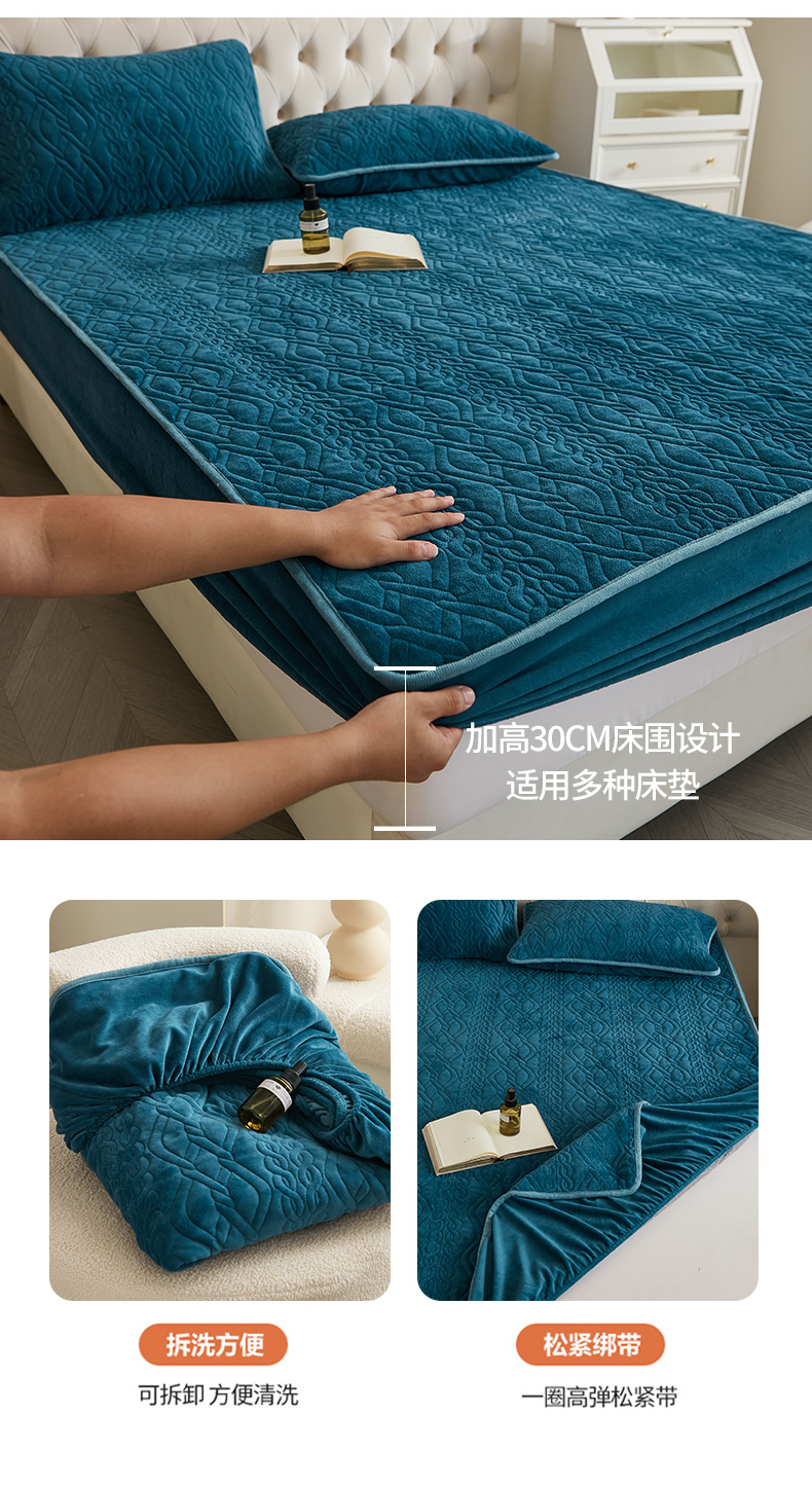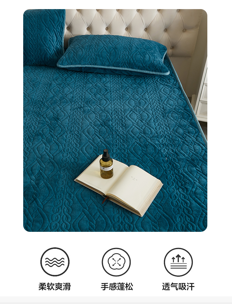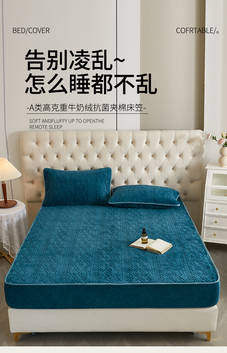 商品名称:网客家纺 2024新款牛奶绒夹棉床笠三件套 牛奶绒夹棉床笠-蓝