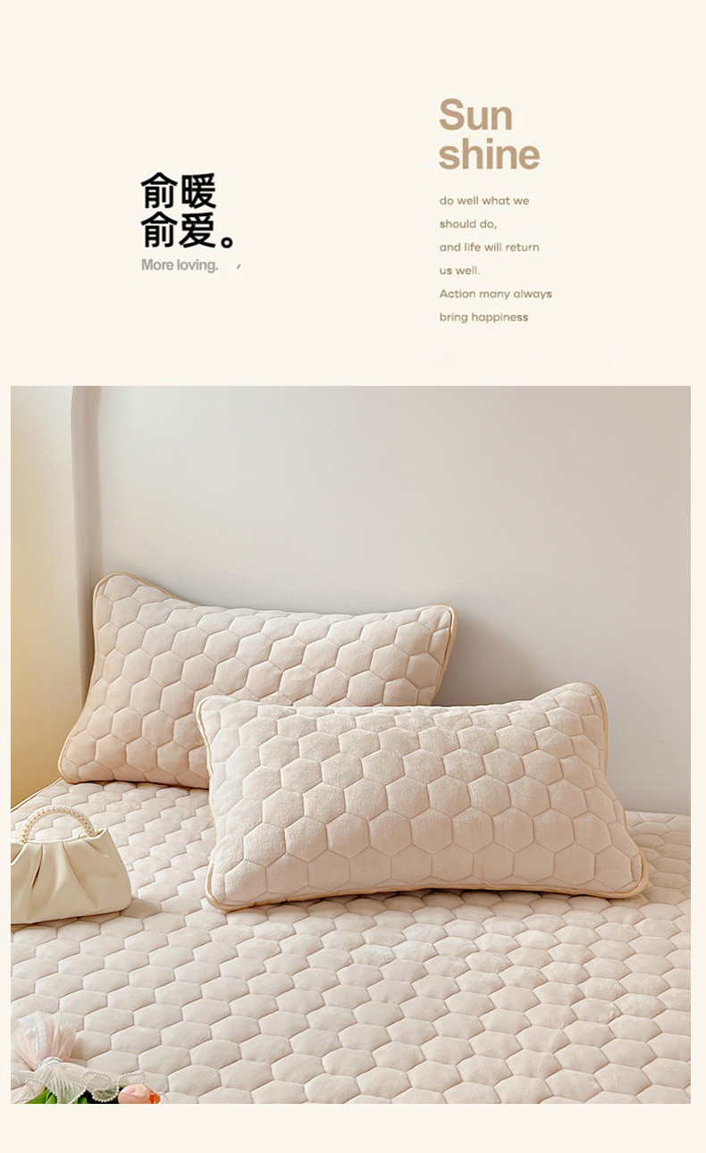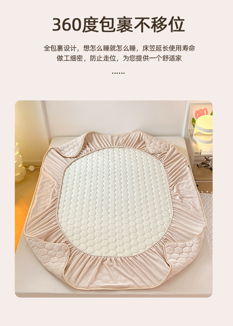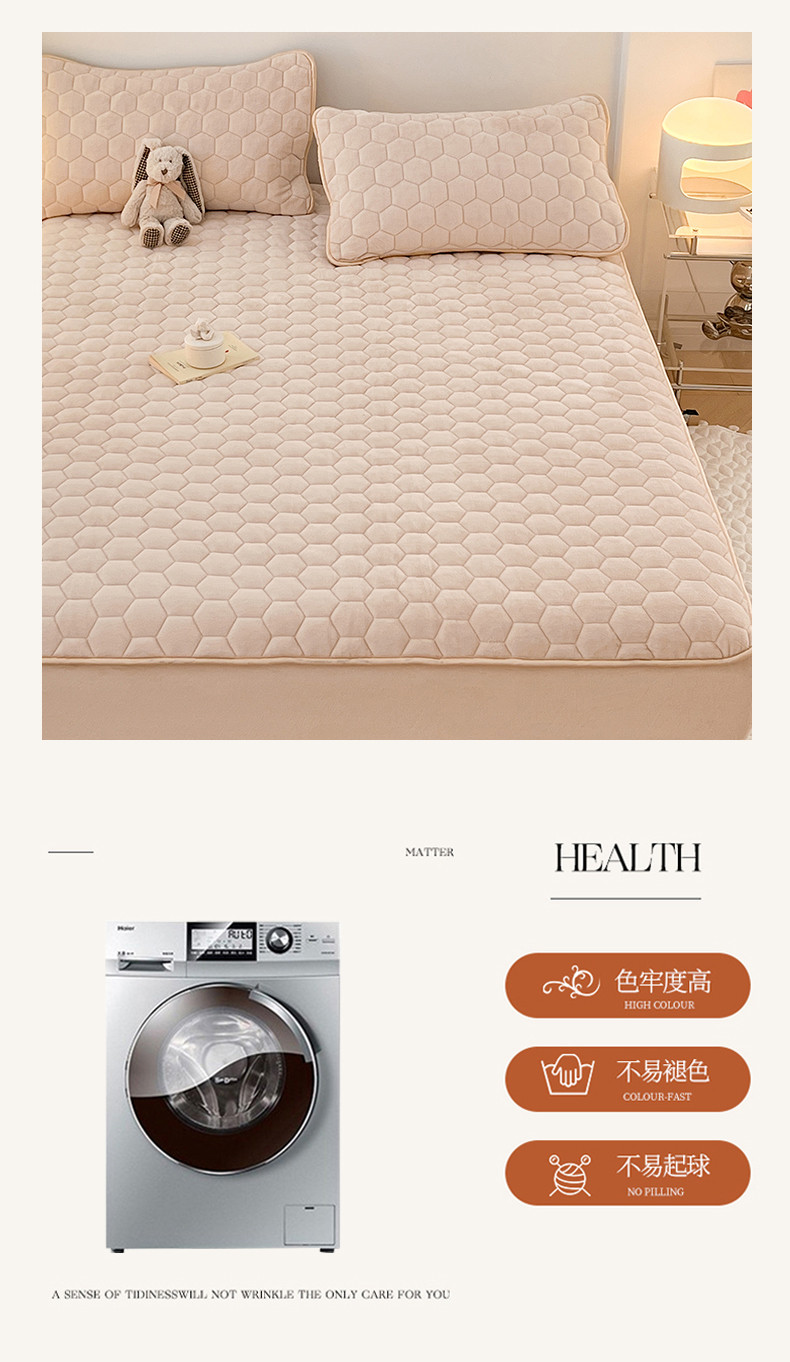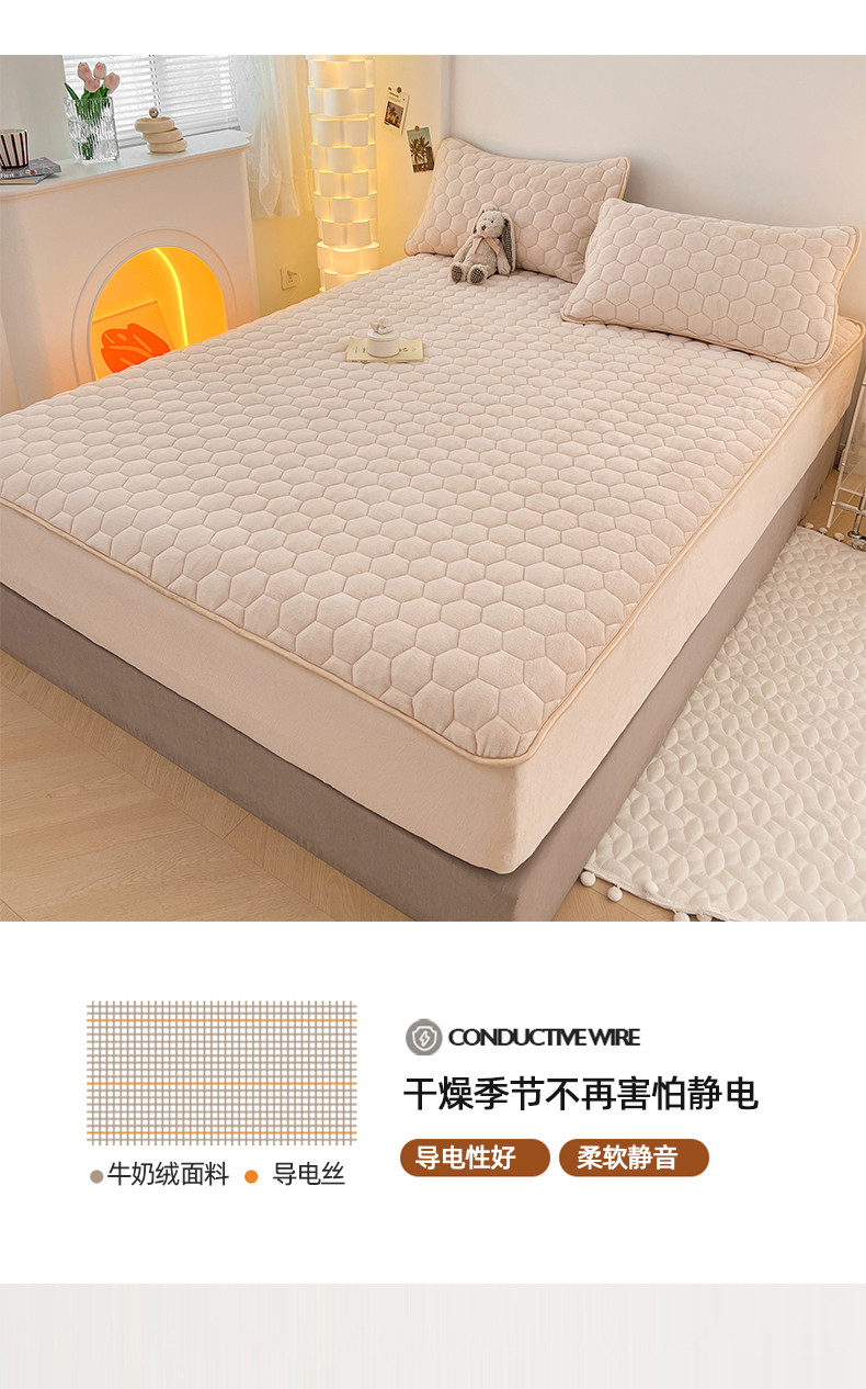 • 91家纺网 家纺一手货源 找家纺 梦舒羽 2025新款牛奶绒夹棉床笠床罩床单床盖床护垫套三件套 卡其米