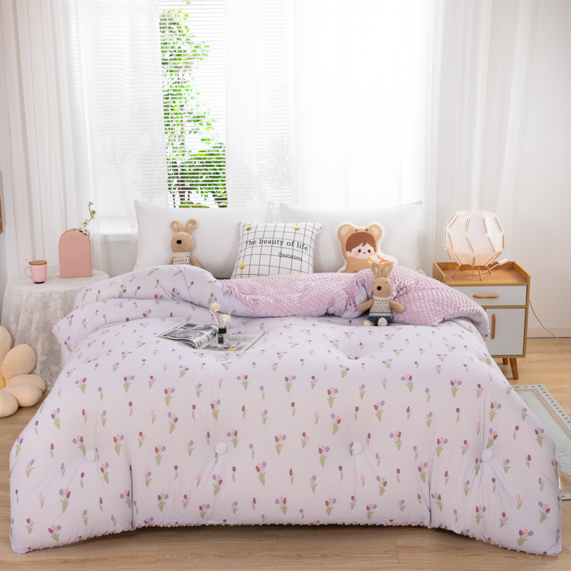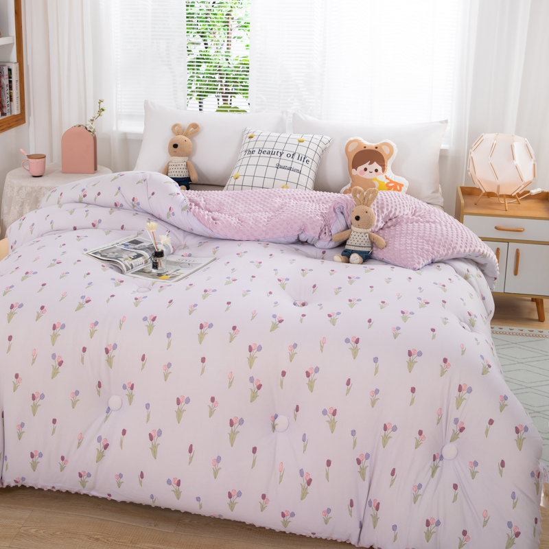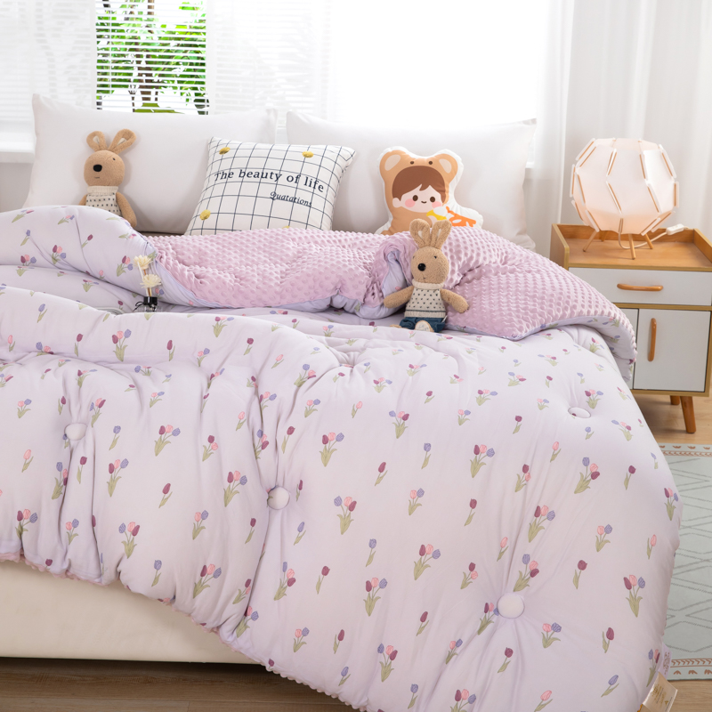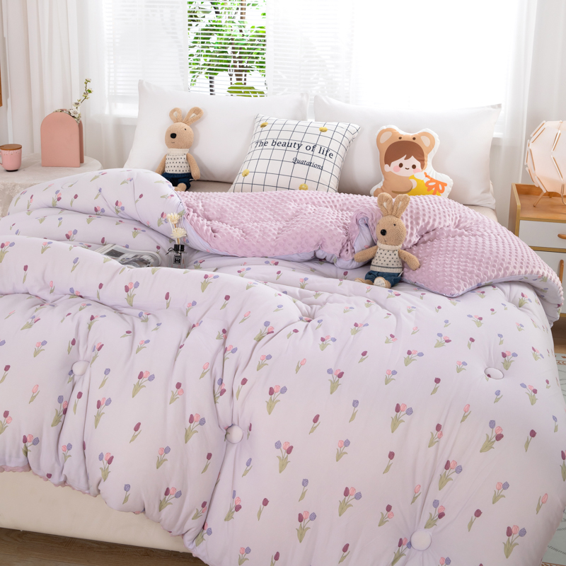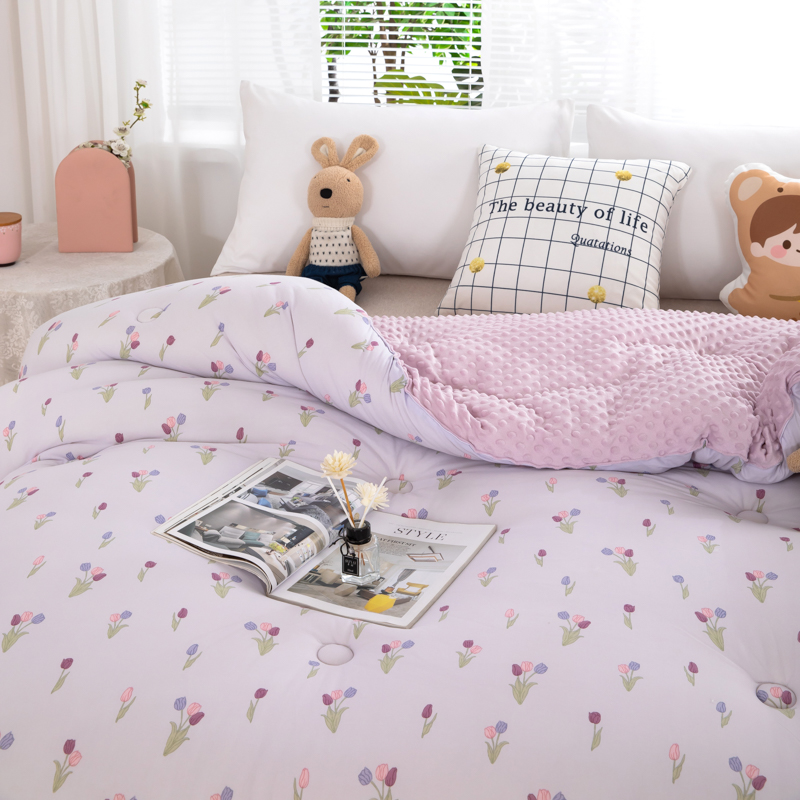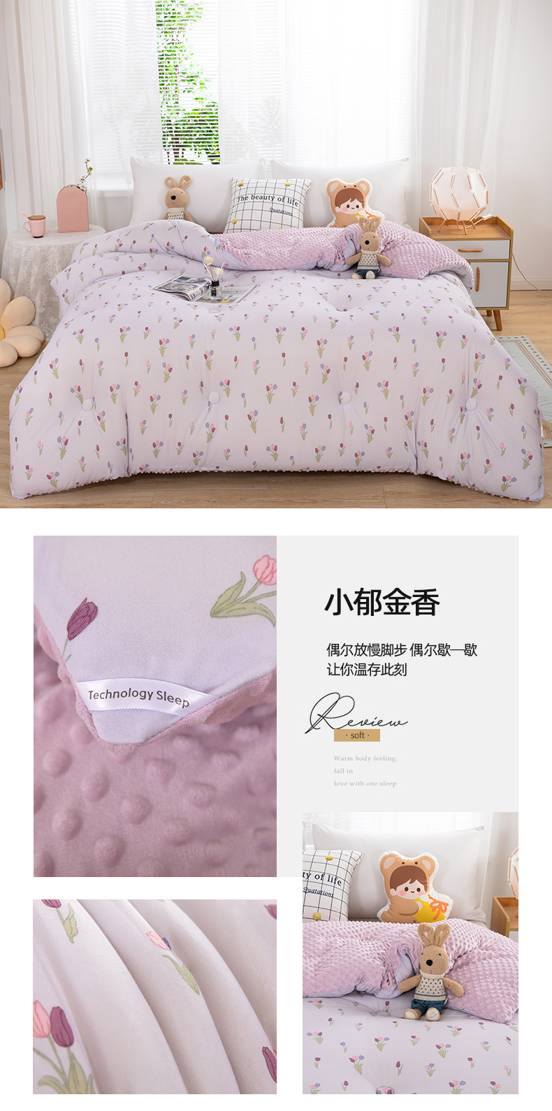 • 91家纺网 家纺一手货源 找家纺 天瑜家纺2023新款针织豆豆绒冬被系列 小郁金香