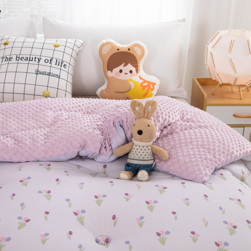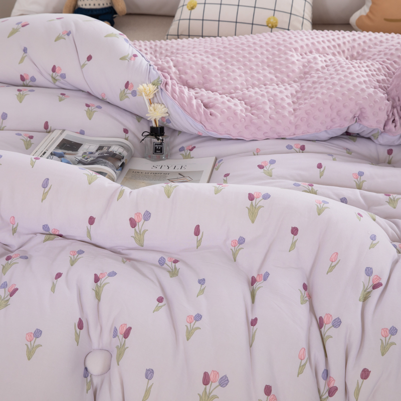 天瑜家纺2023新款针织豆豆绒冬被系列 小郁金香