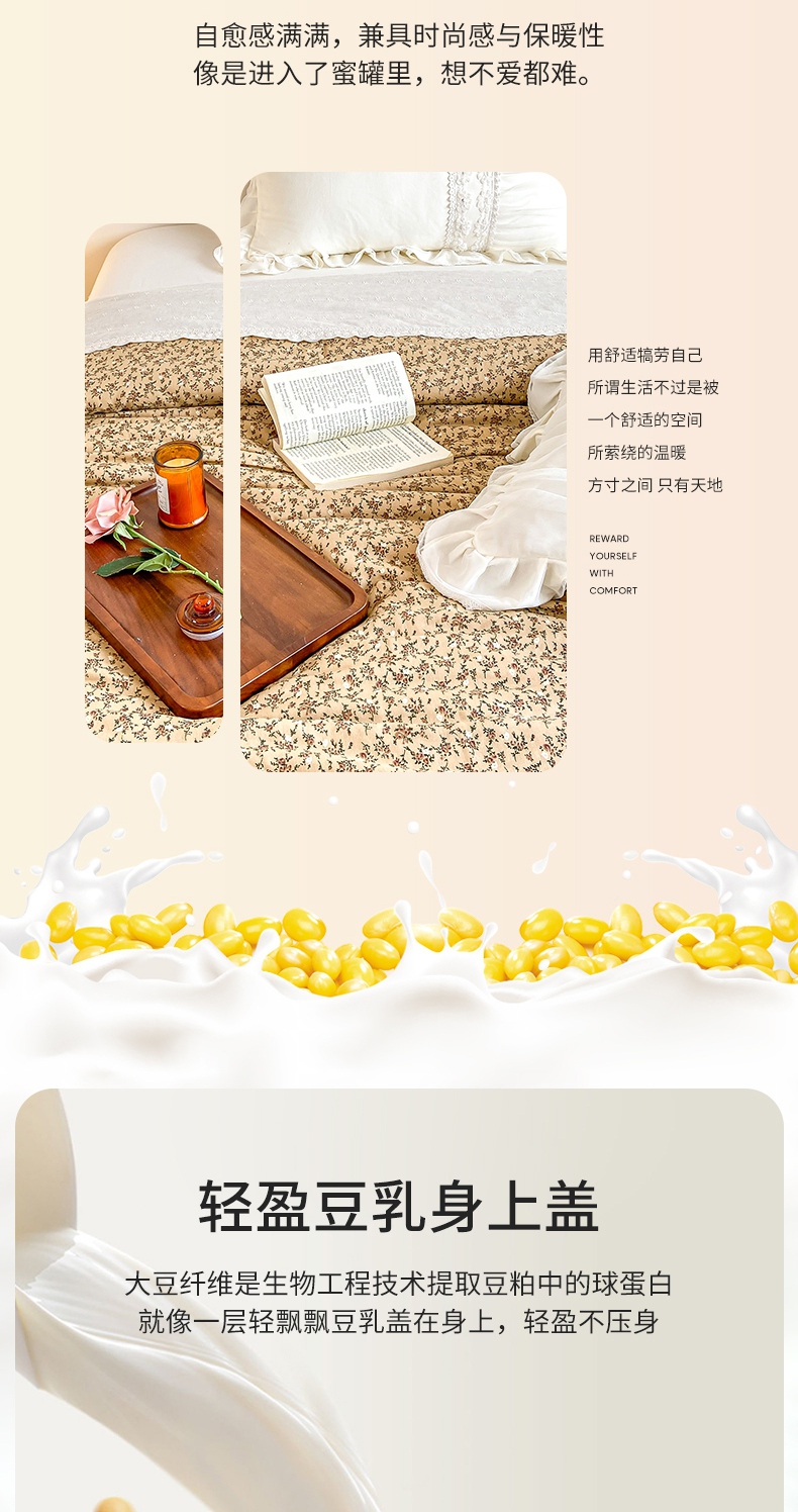 (总)上喜 2026新款多功能夏被床盖四件套浪漫生活,浪漫生活-白色,浪漫生活-米色