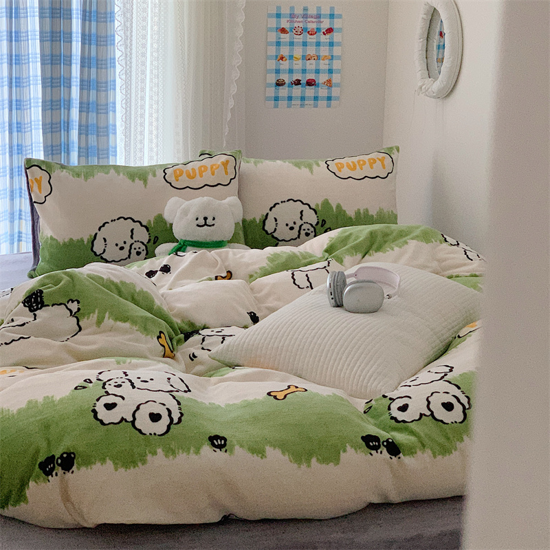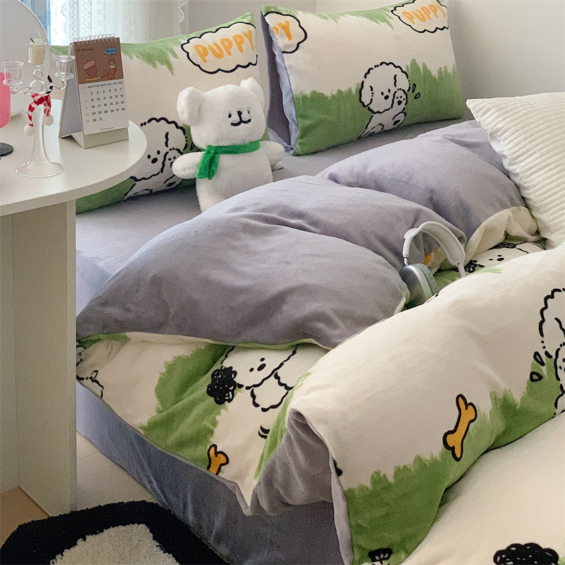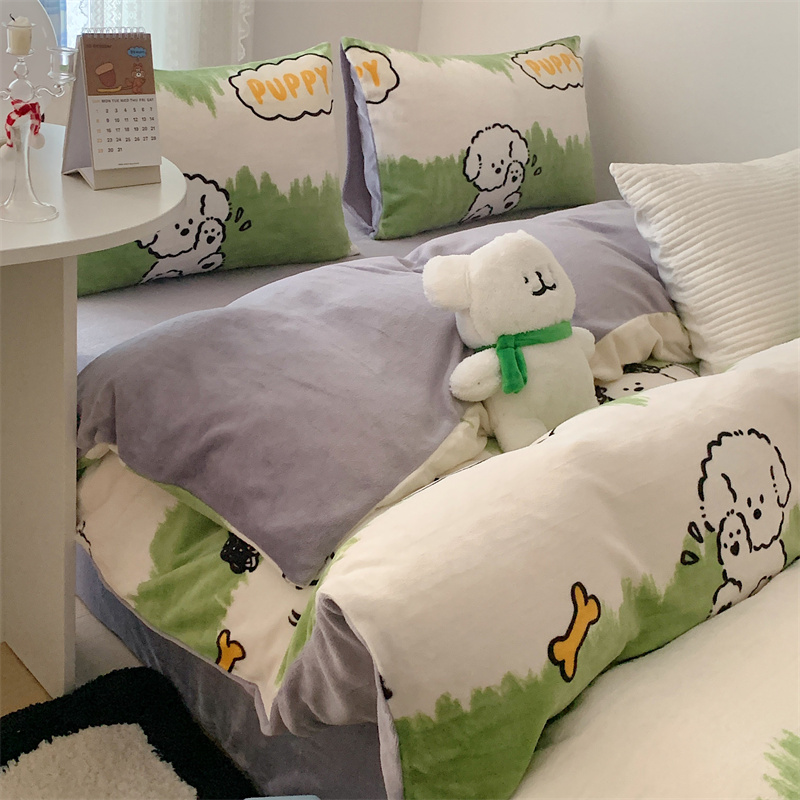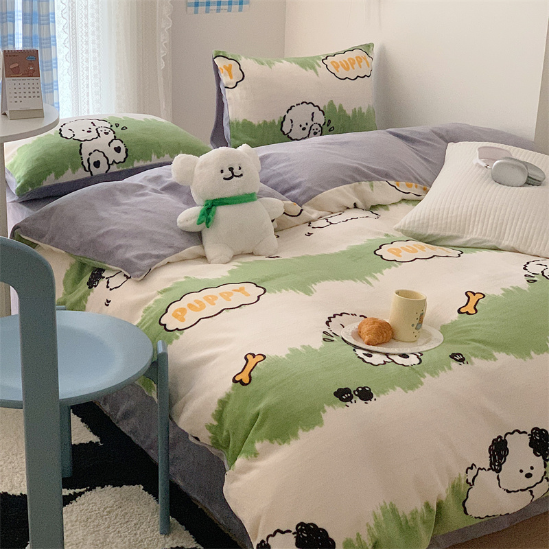 美乐迪家纺 2023秋冬新款保暖牛奶绒四件套 呆萌