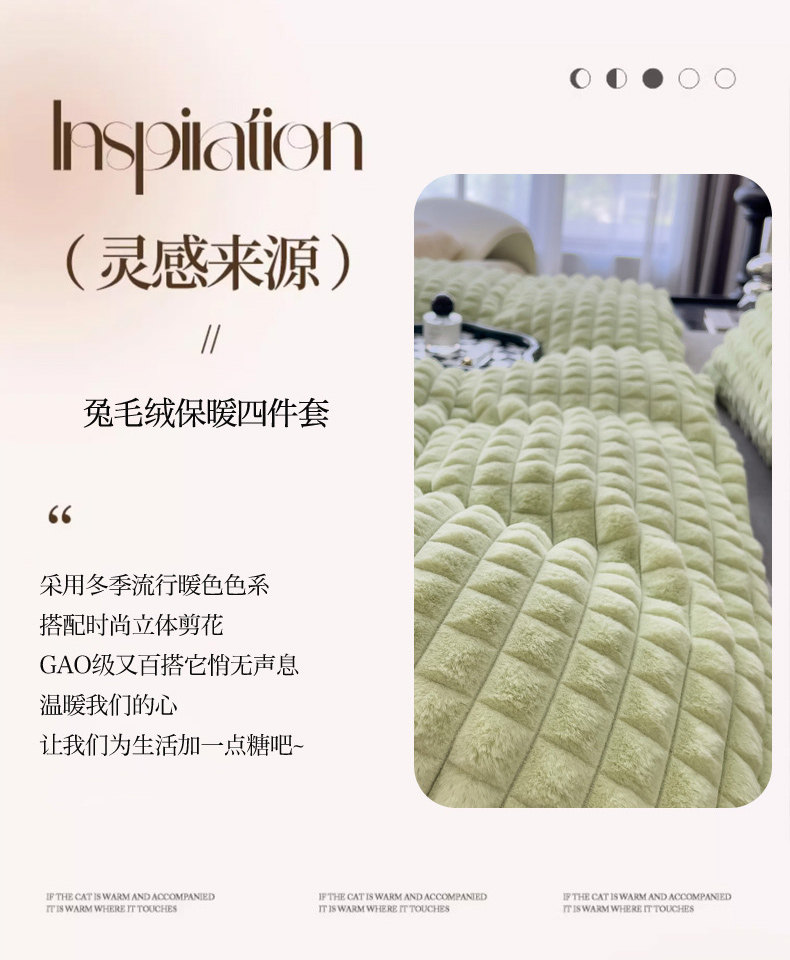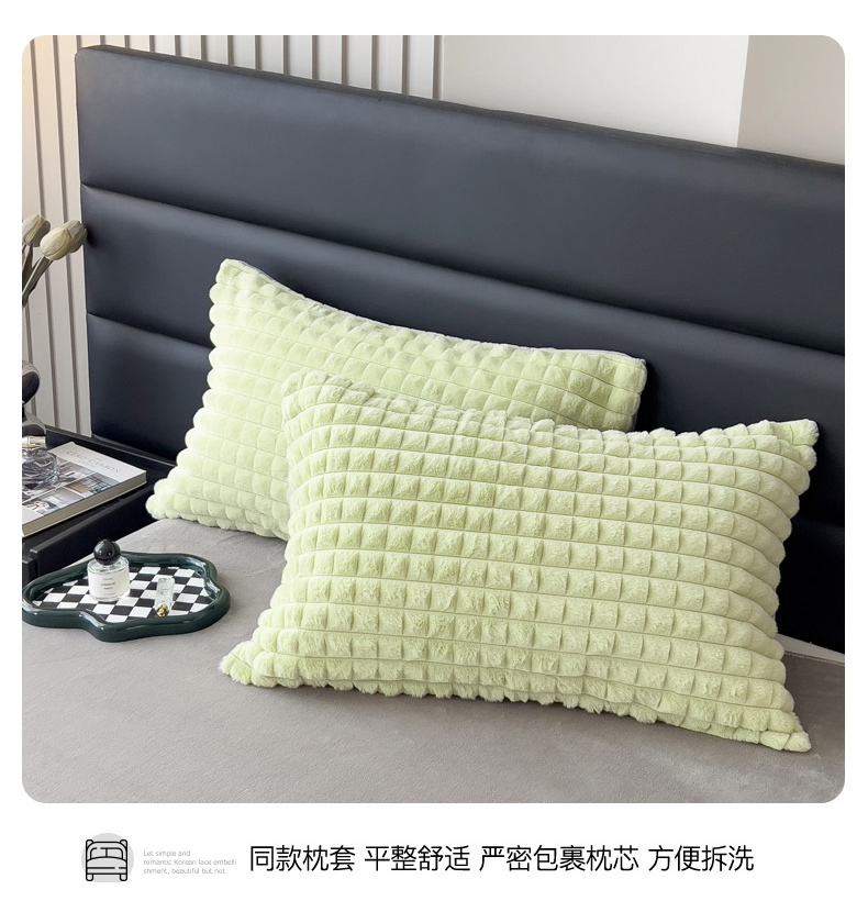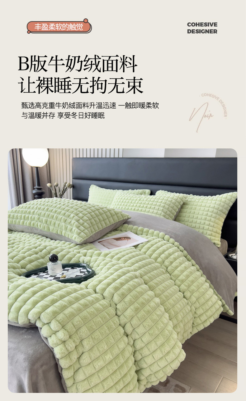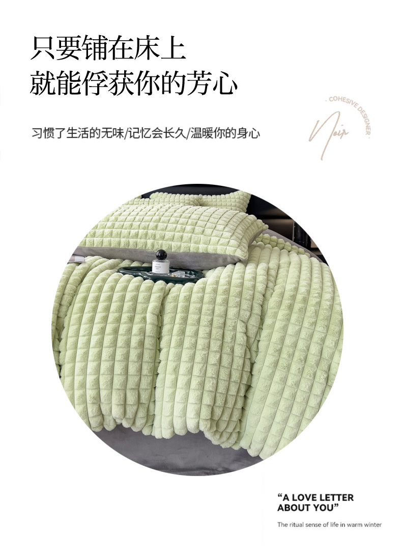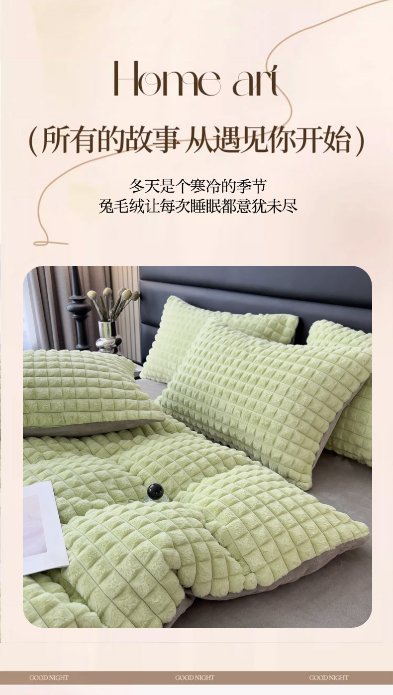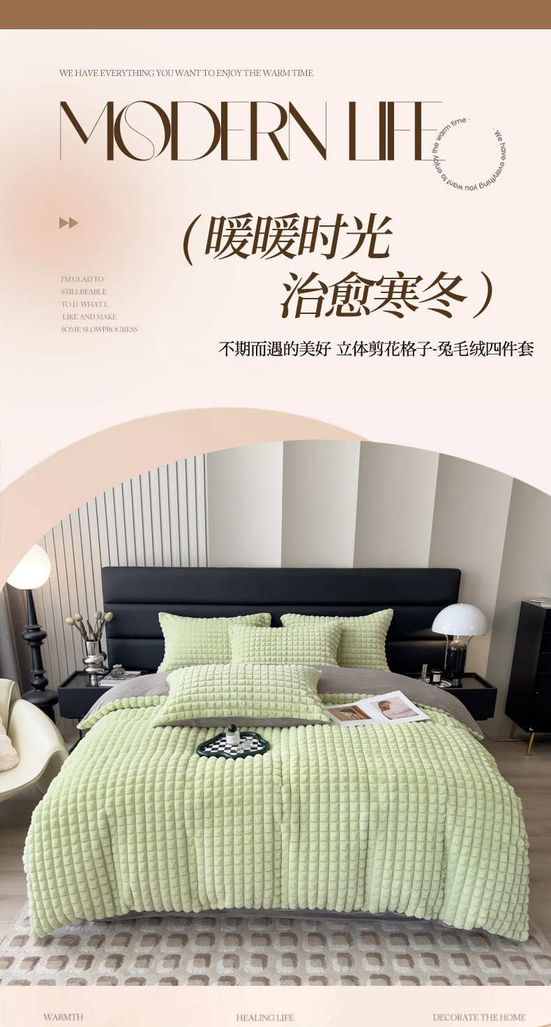 商品名称:印季 2024新款立体剪花格子兔毛绒四件套 草绿-灰