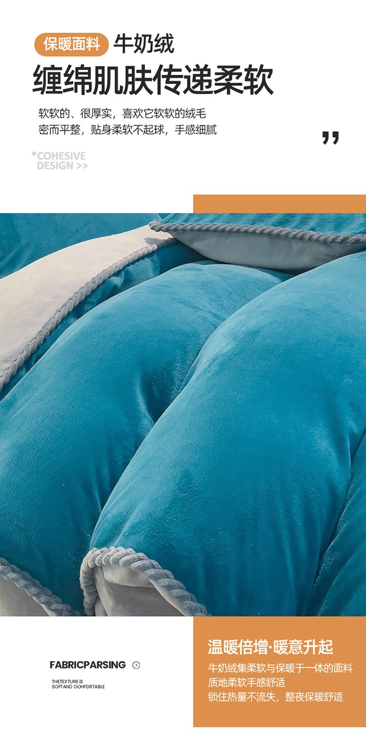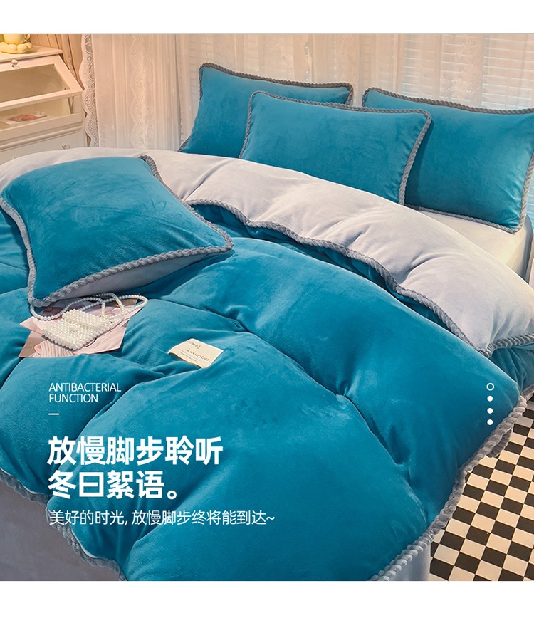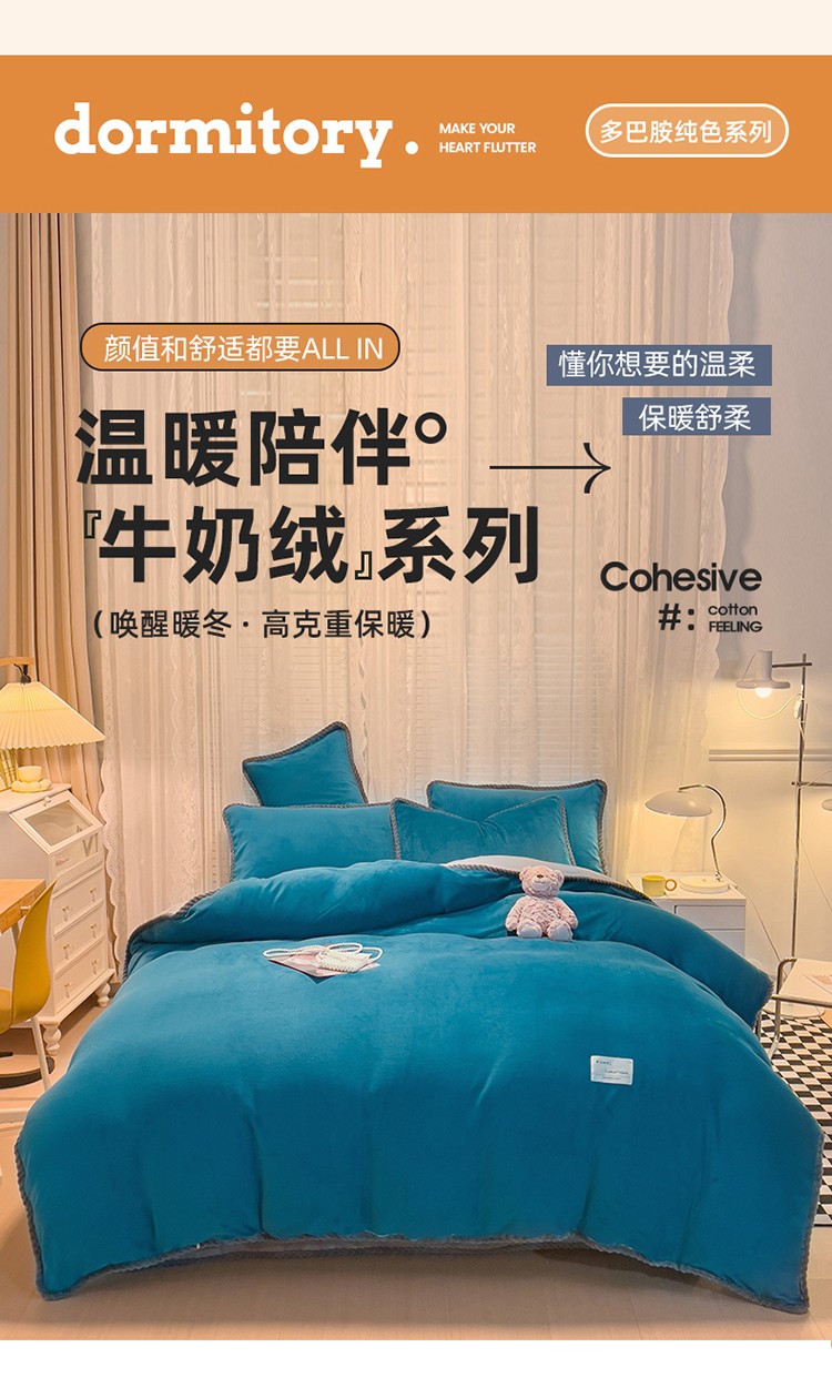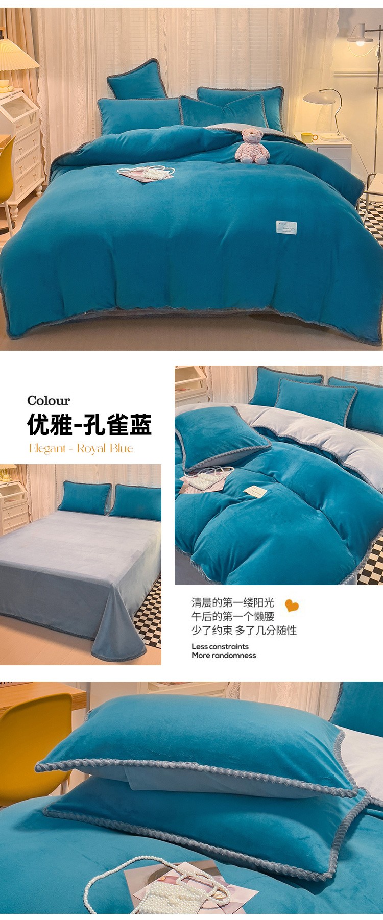 欧冠 2023新款加厚牛奶绒纯色优雅四件套 优雅-孔雀蓝