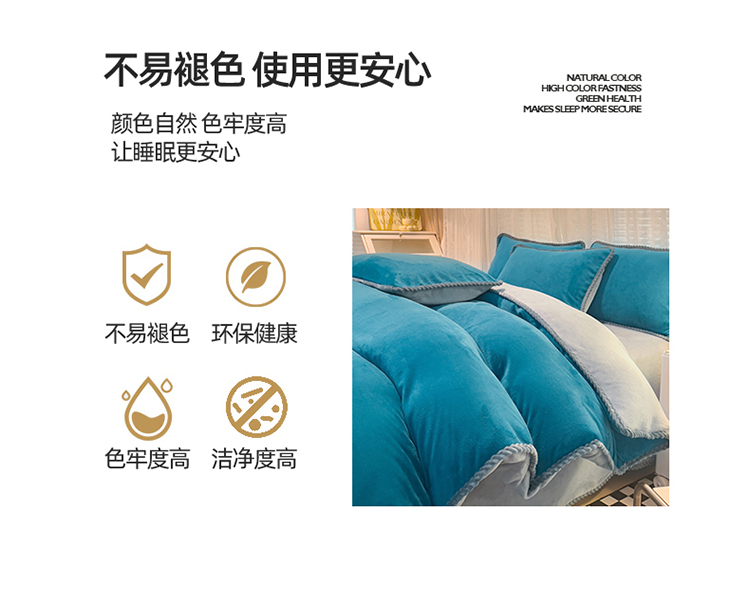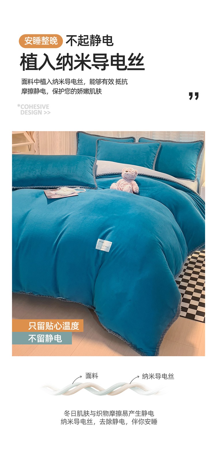 商品名称:欧冠 2023新款加厚牛奶绒纯色优雅四件套 优雅-孔雀蓝