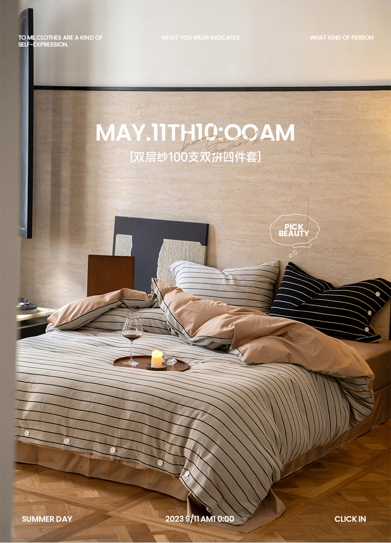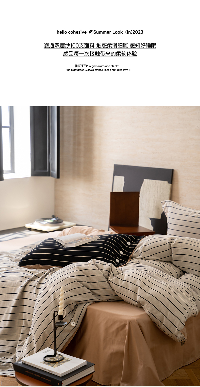(总)华超针织 2023新款双层纱100支双拼四件套