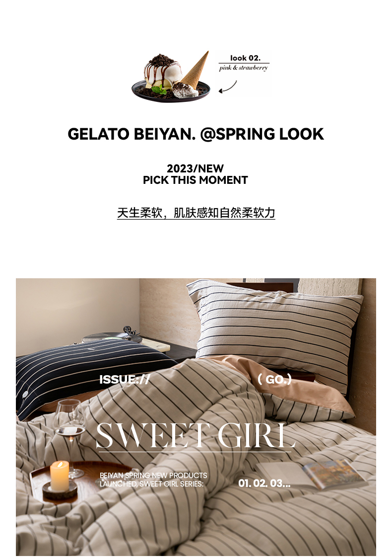 (总)华超针织 2025新款亲肤舒适全棉纯棉针织五件套四件套,奶糖+樱桃,杏粉+花田,杏灰+玫瑰