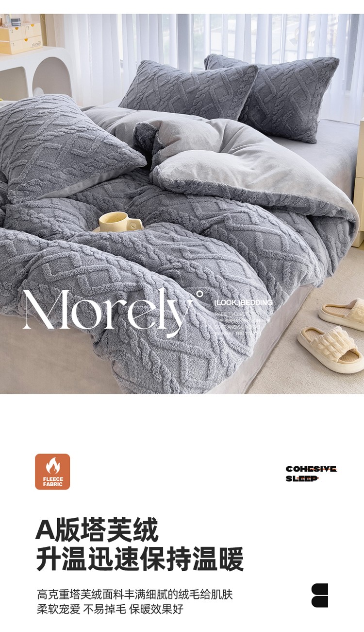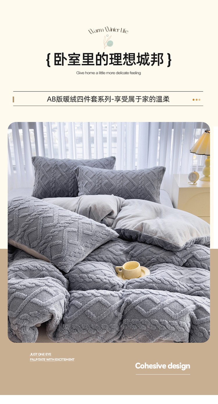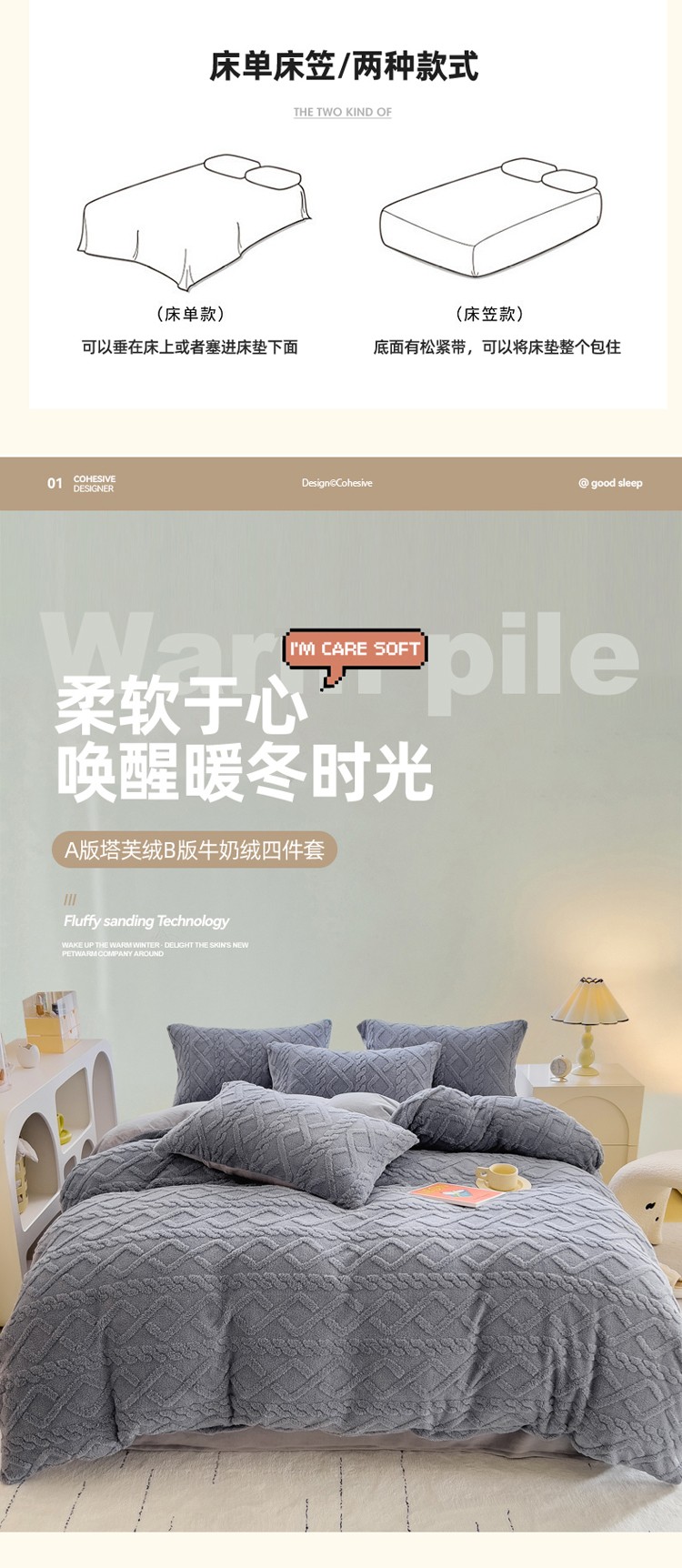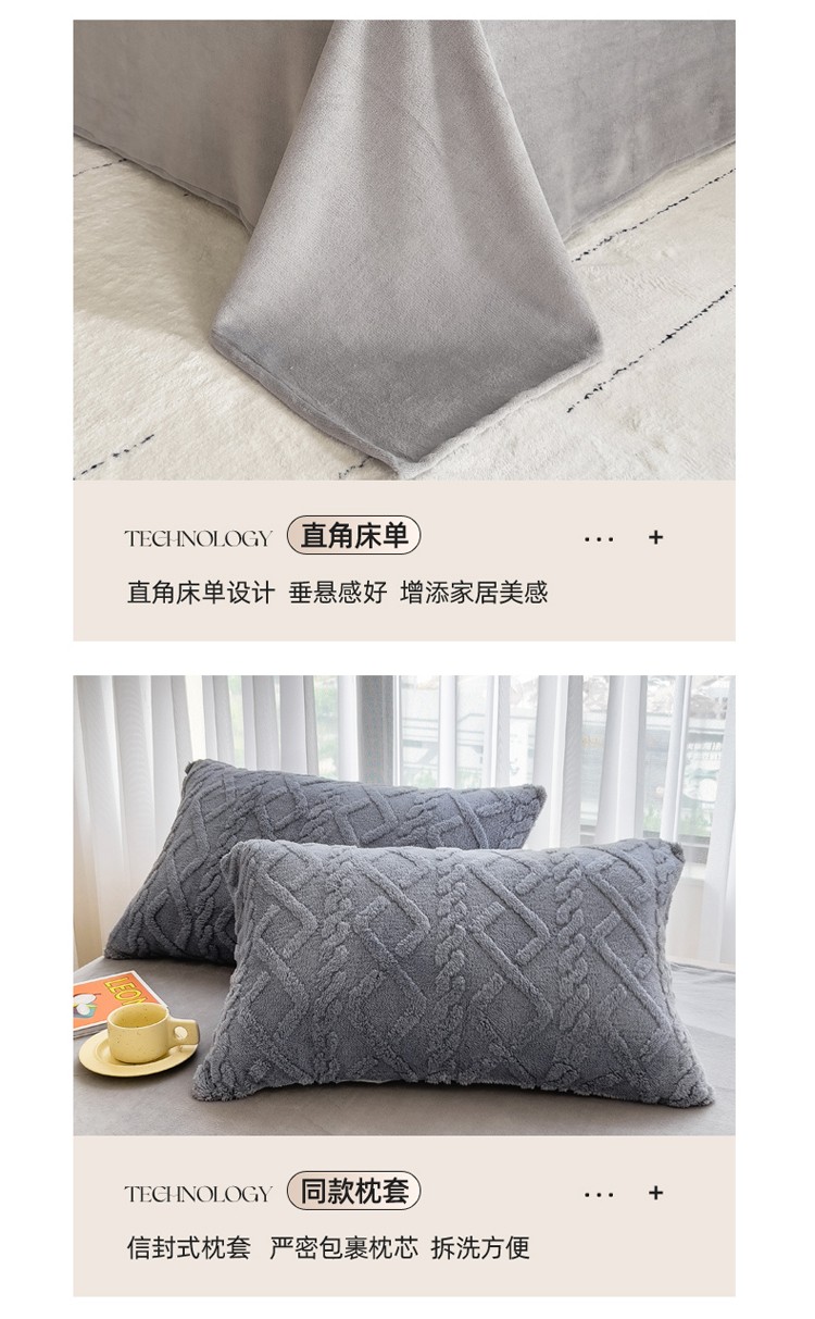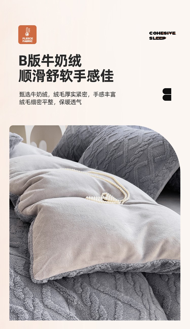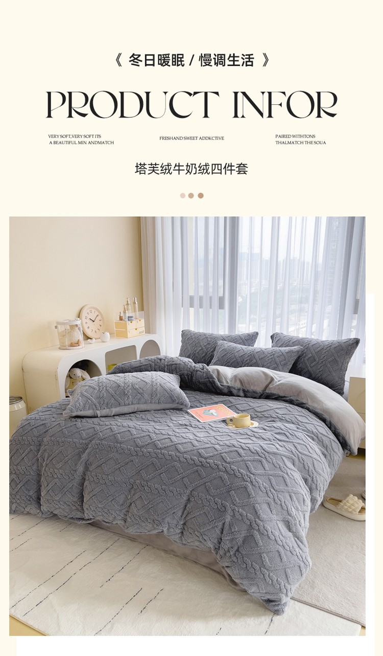 商品名称:欧冠 2023秋冬加厚塔芙绒简约款牛奶绒四件套 浅灰