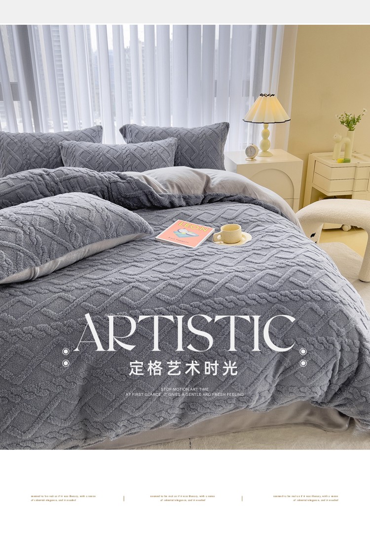 欧冠 2023秋冬加厚塔芙绒简约款牛奶绒四件套 浅灰