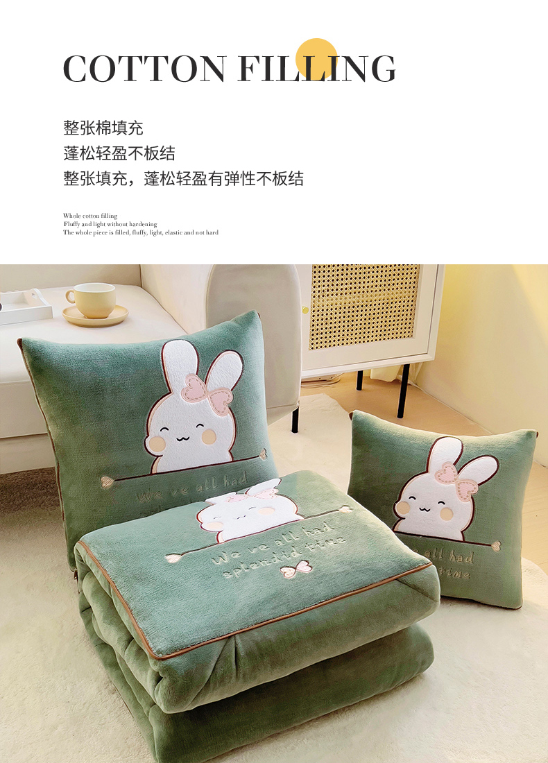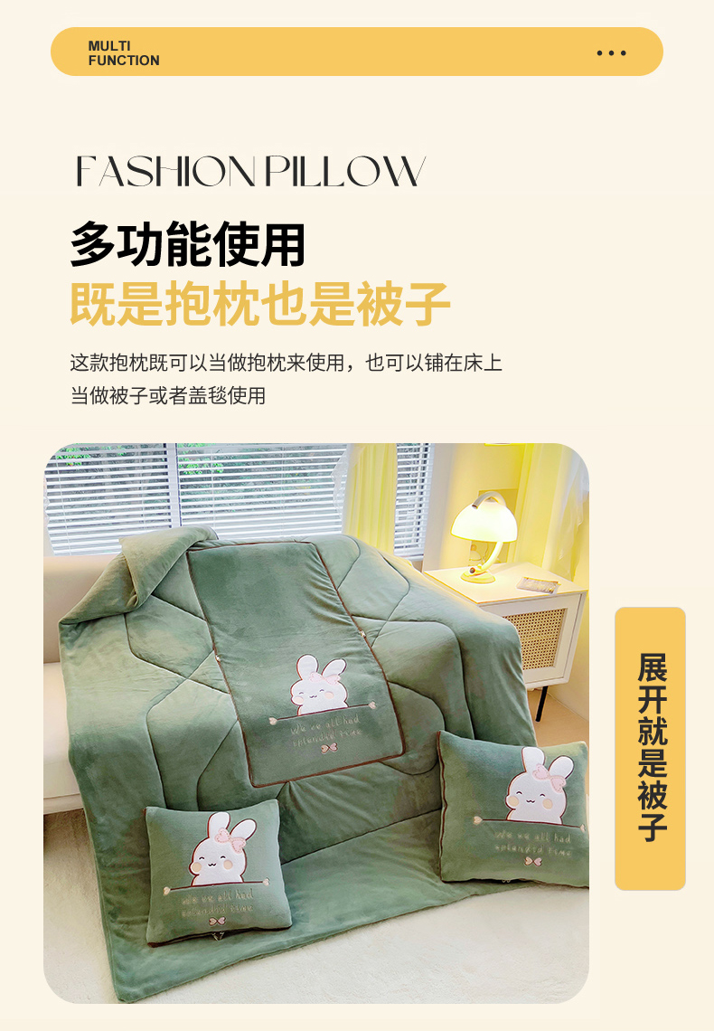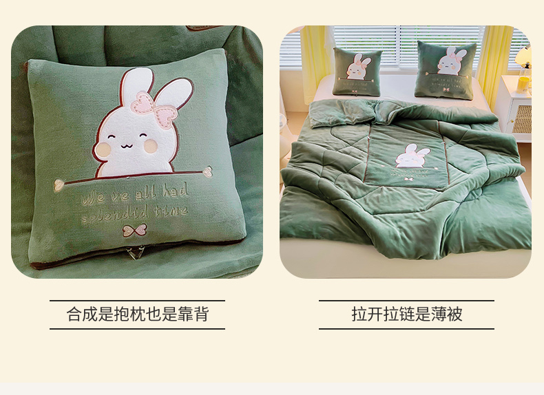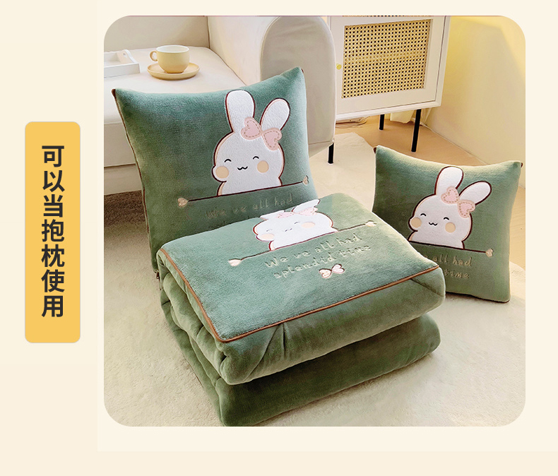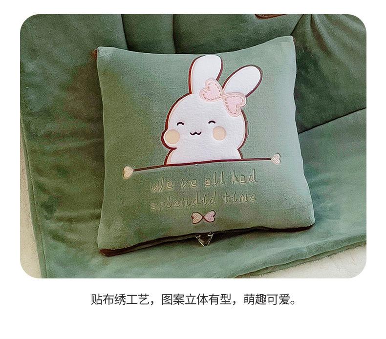 阳光依佰 2023新款多功能牛奶绒抱枕被-暖暖兔 墨绿