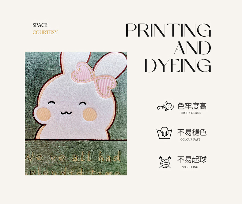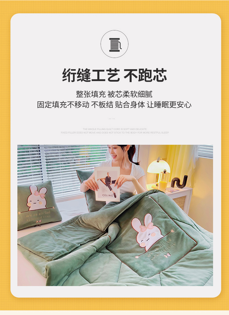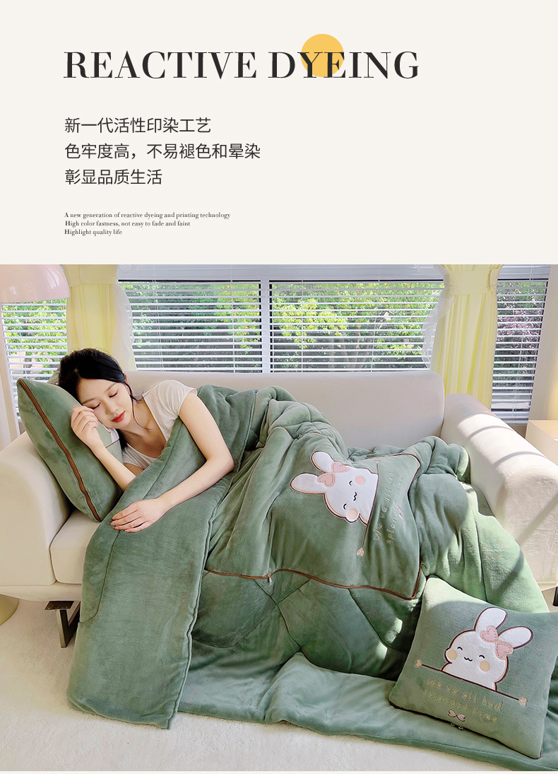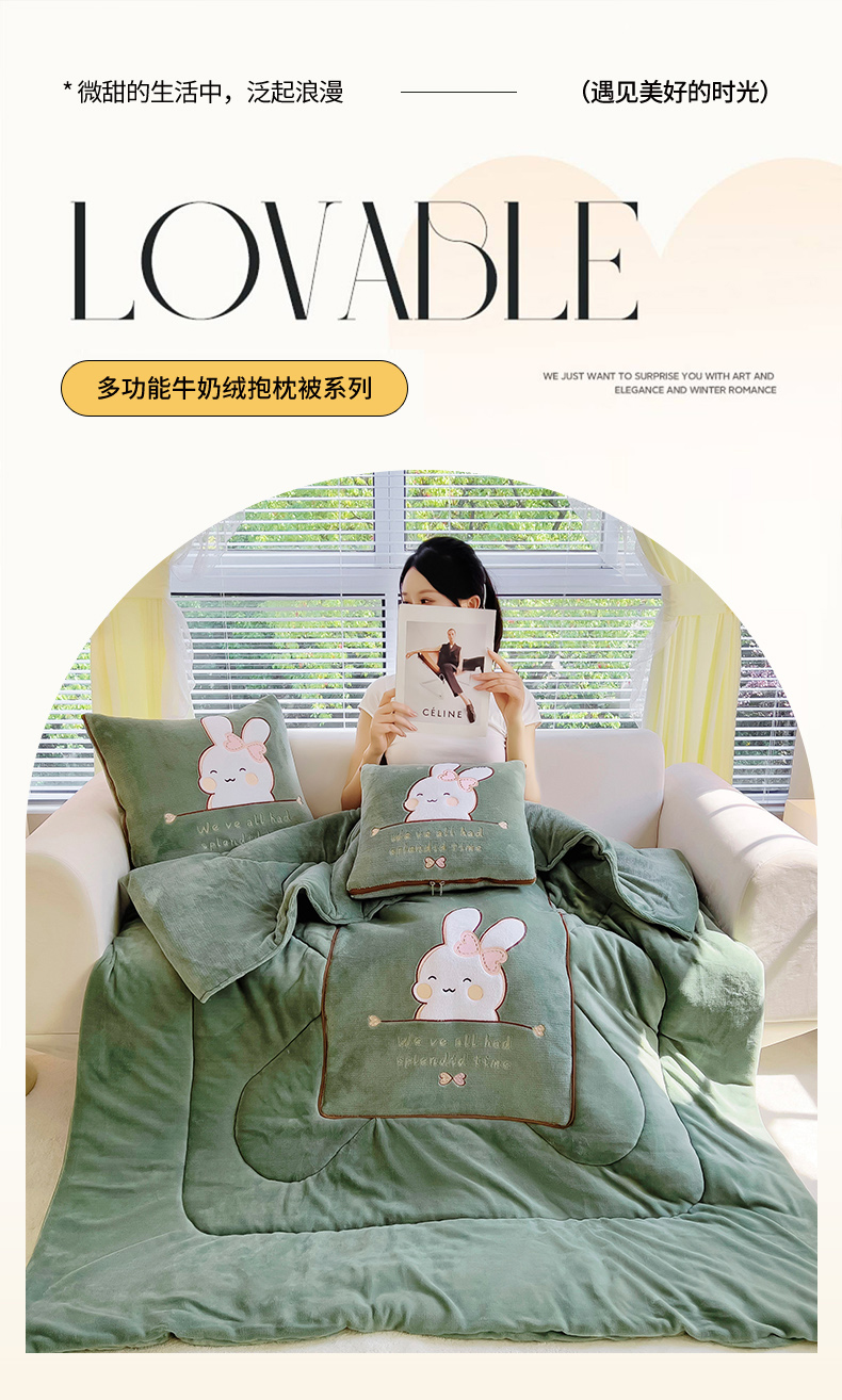 阳光依佰 2023新款多功能牛奶绒抱枕被-暖暖兔 墨绿