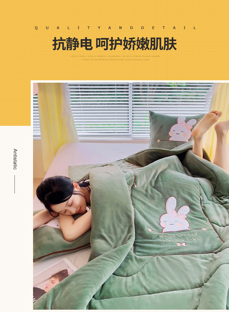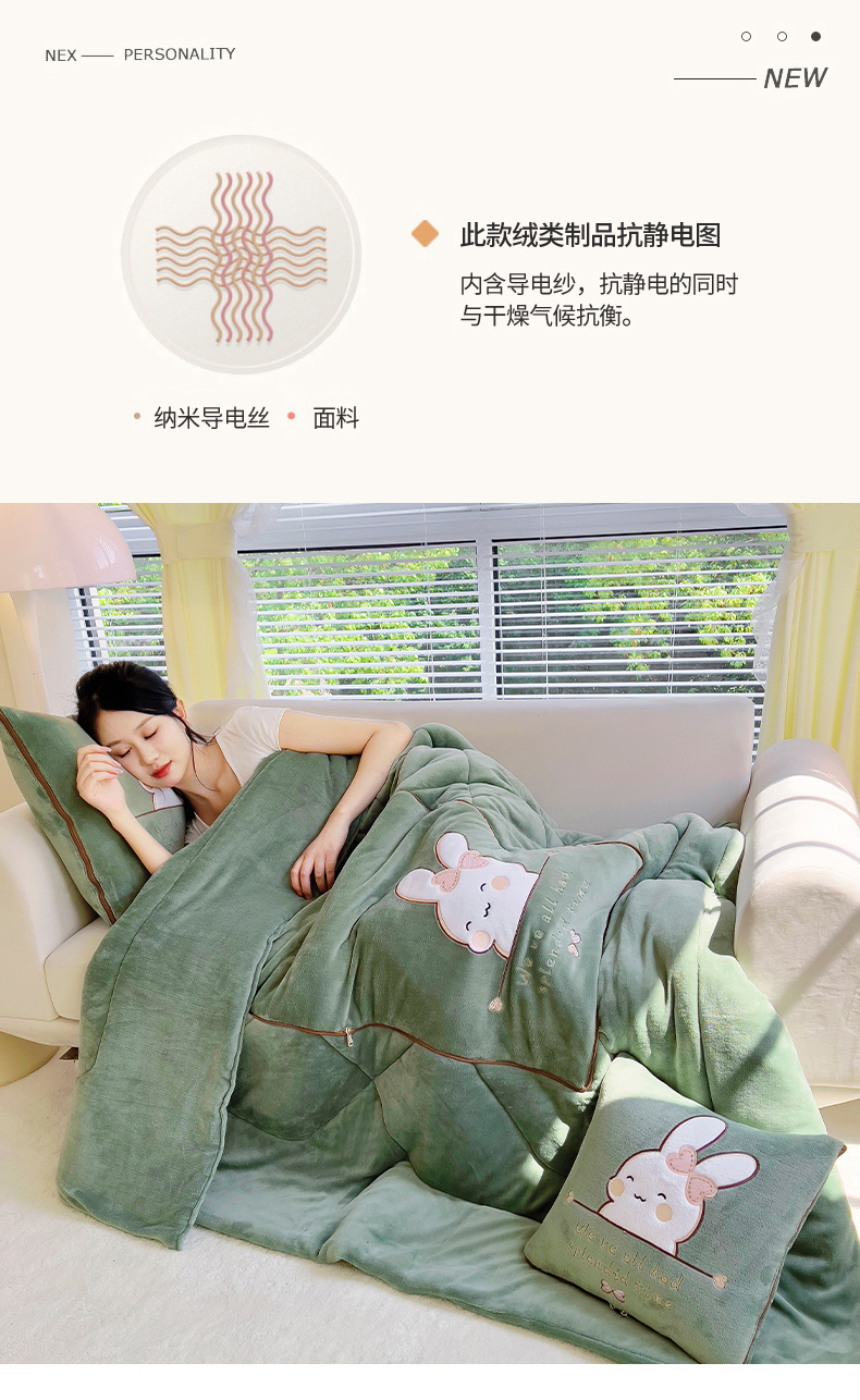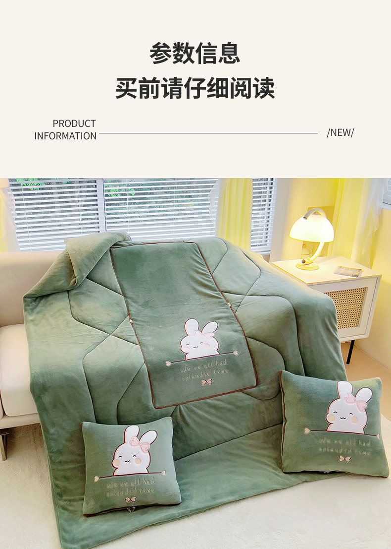 商品名称:阳光依佰 2023新款多功能牛奶绒抱枕被-暖暖兔 墨绿