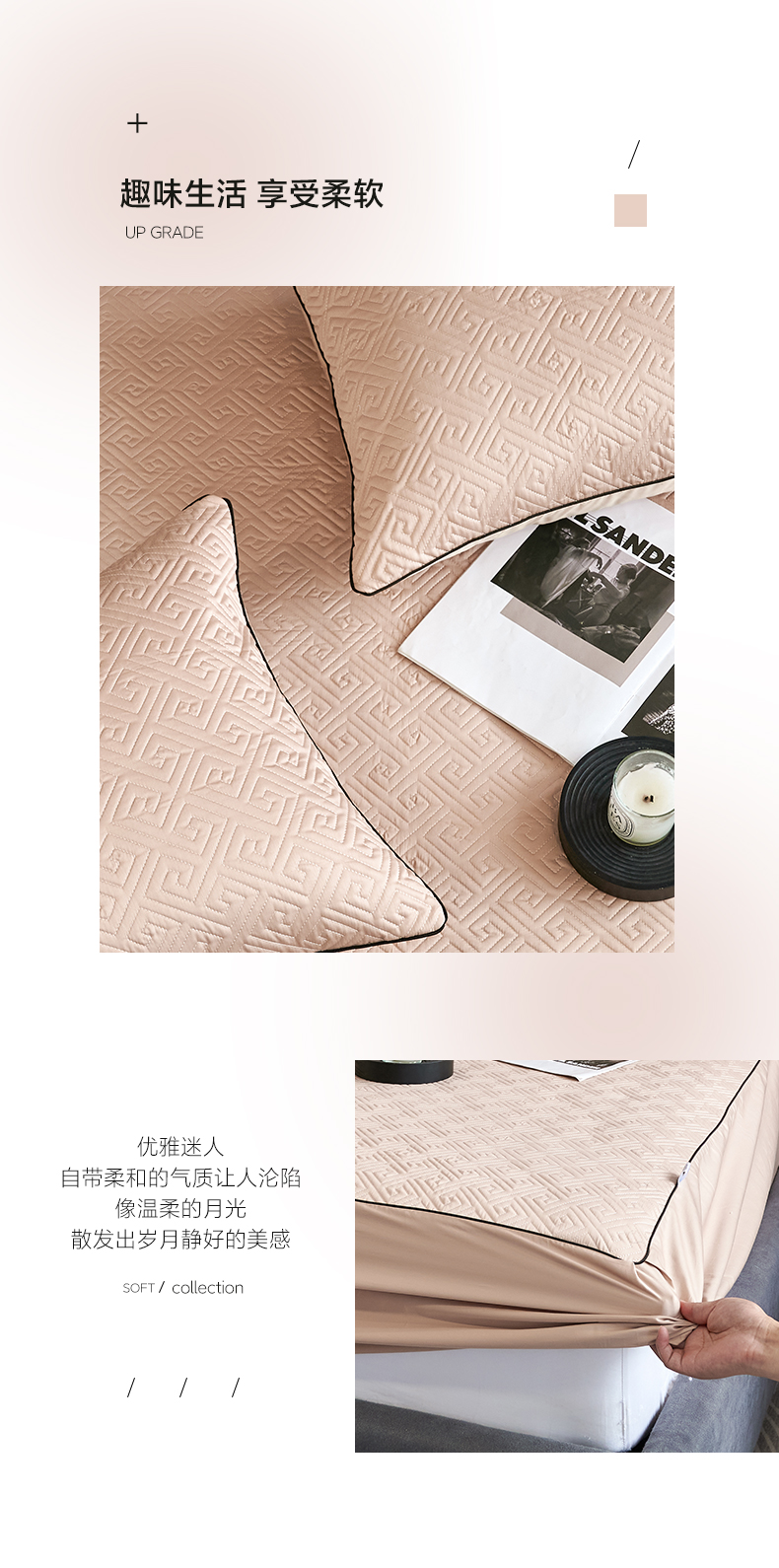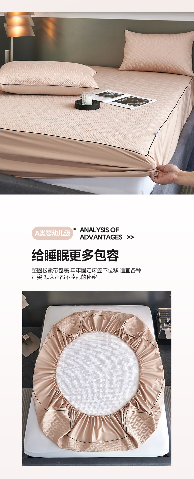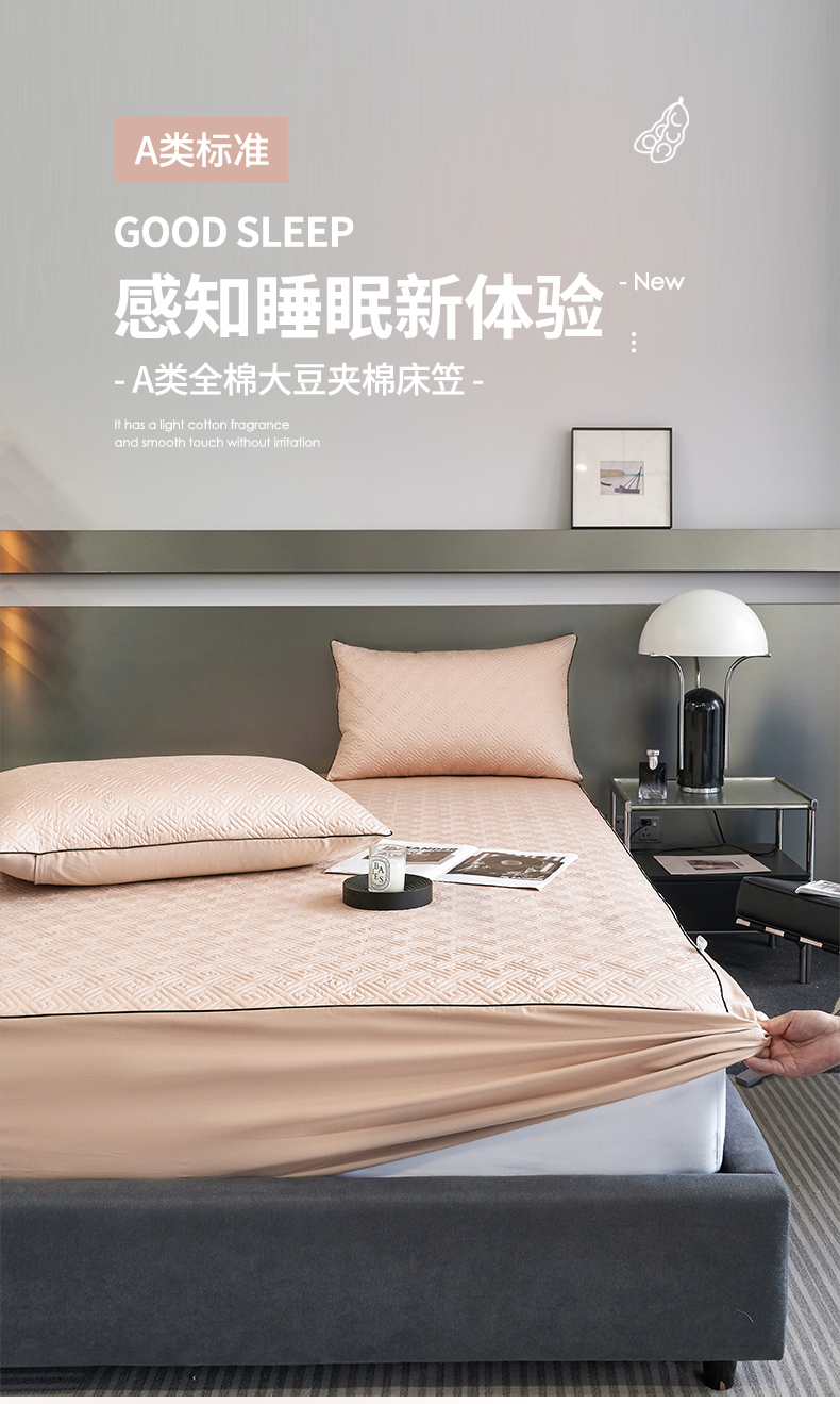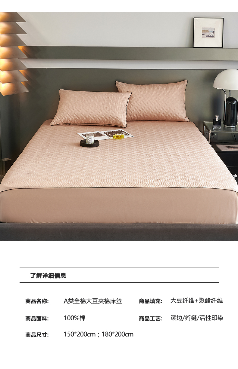 商品名称:八十八家纺2023新款大豆纤维夹棉床笠 香槟金