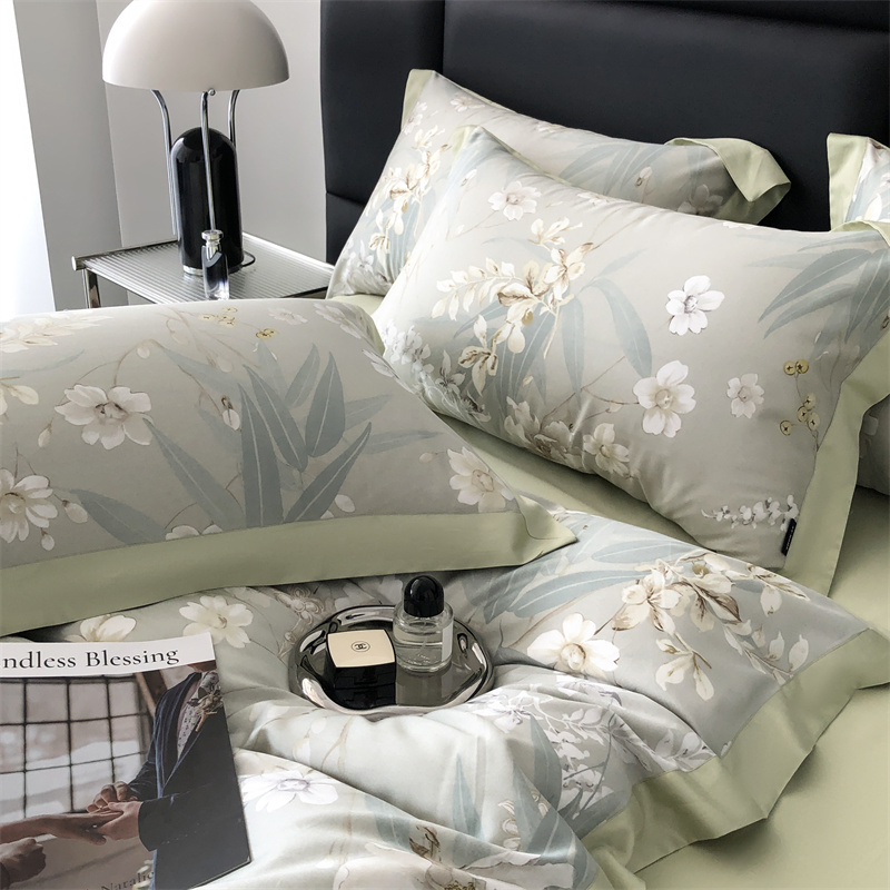 (总)时亿 2023新款100支长绒棉四件套苍兰之约,苍兰之约-橙,苍兰之约-绿