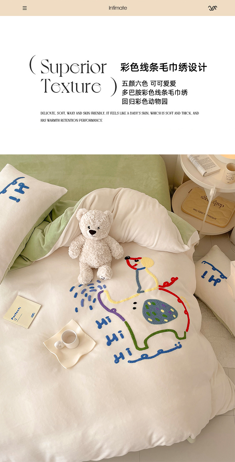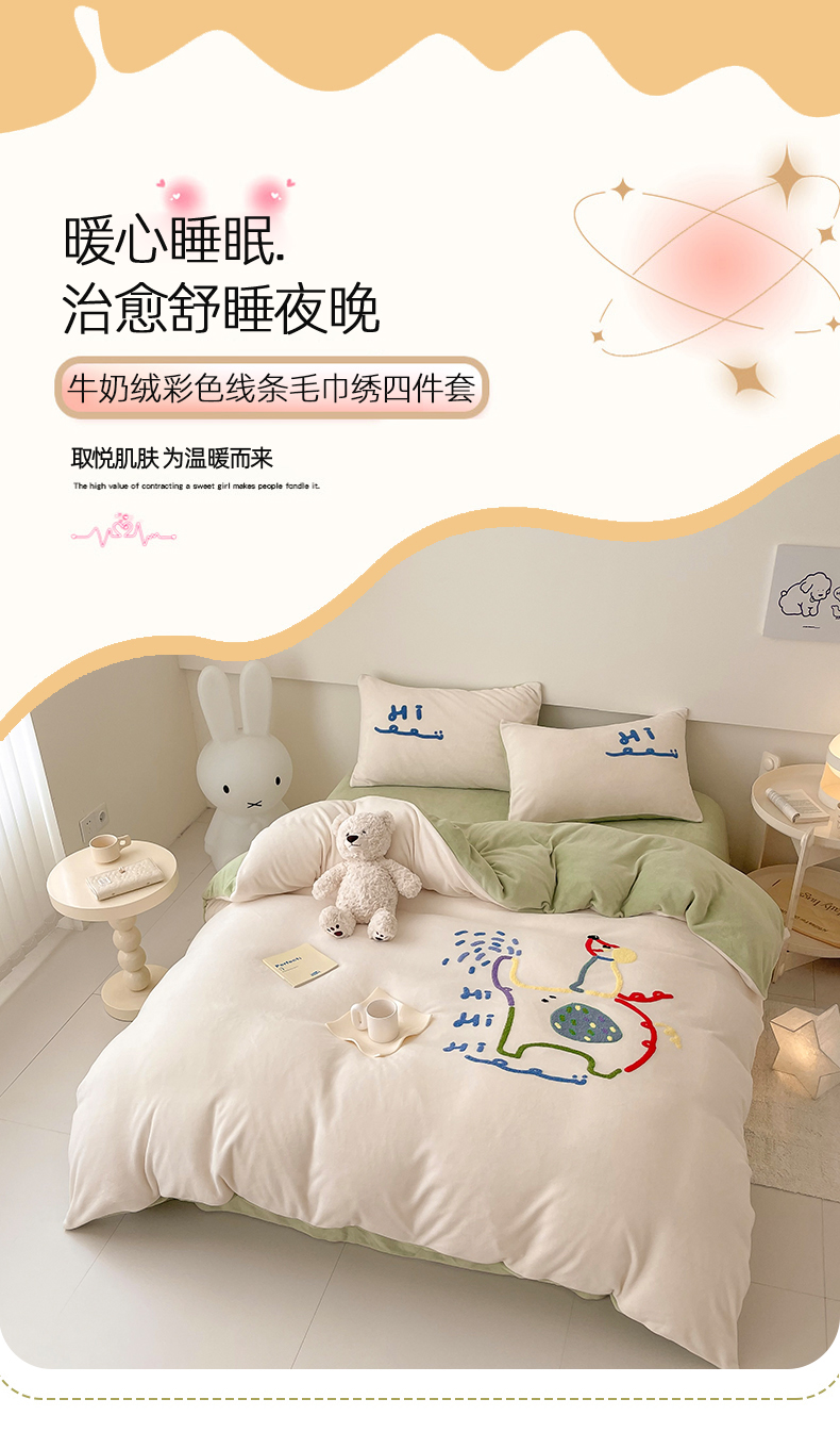 当前位置: 91家纺网 > 商品网购 > 床品套件 > 四件套 > 毛巾绣四件套 > (总)玛奇朵 2023新款秋冬牛奶绒多巴胺彩色线条毛巾绣四件套