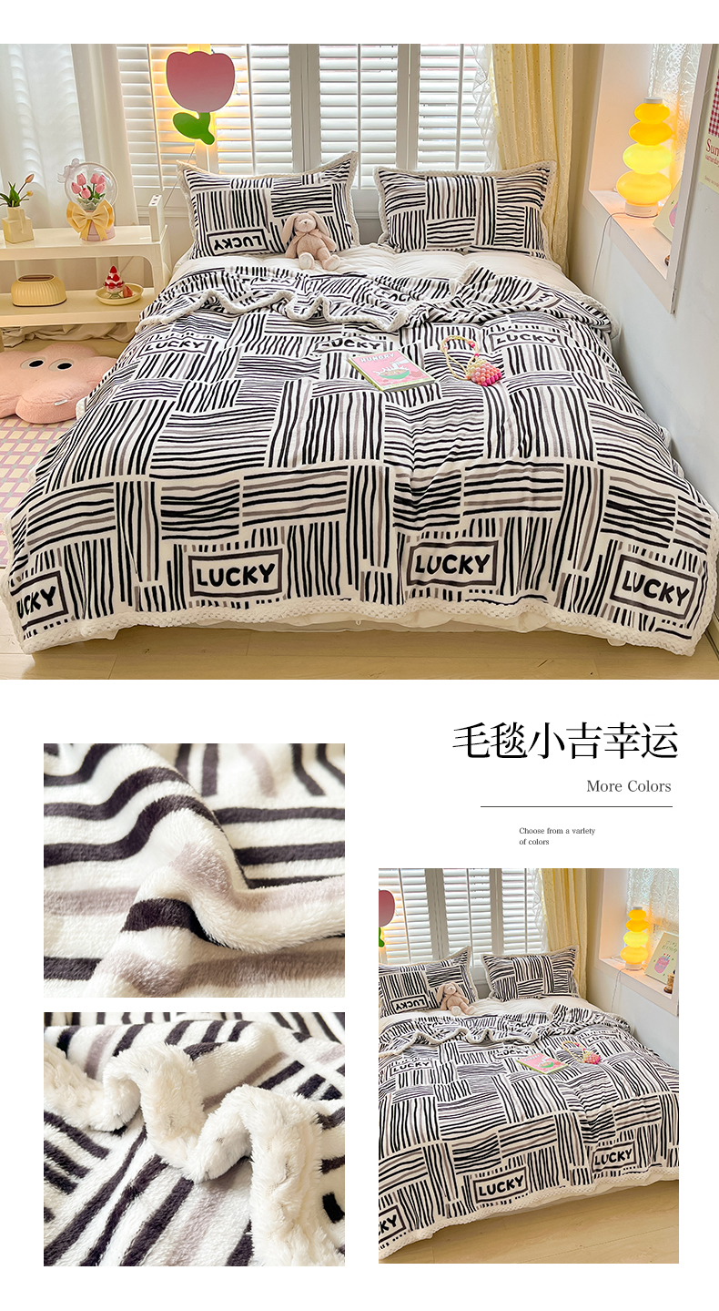 商品名称:川悦生活 2023新款双面240克宽边牛奶绒毯子 毛毯小吉幸运