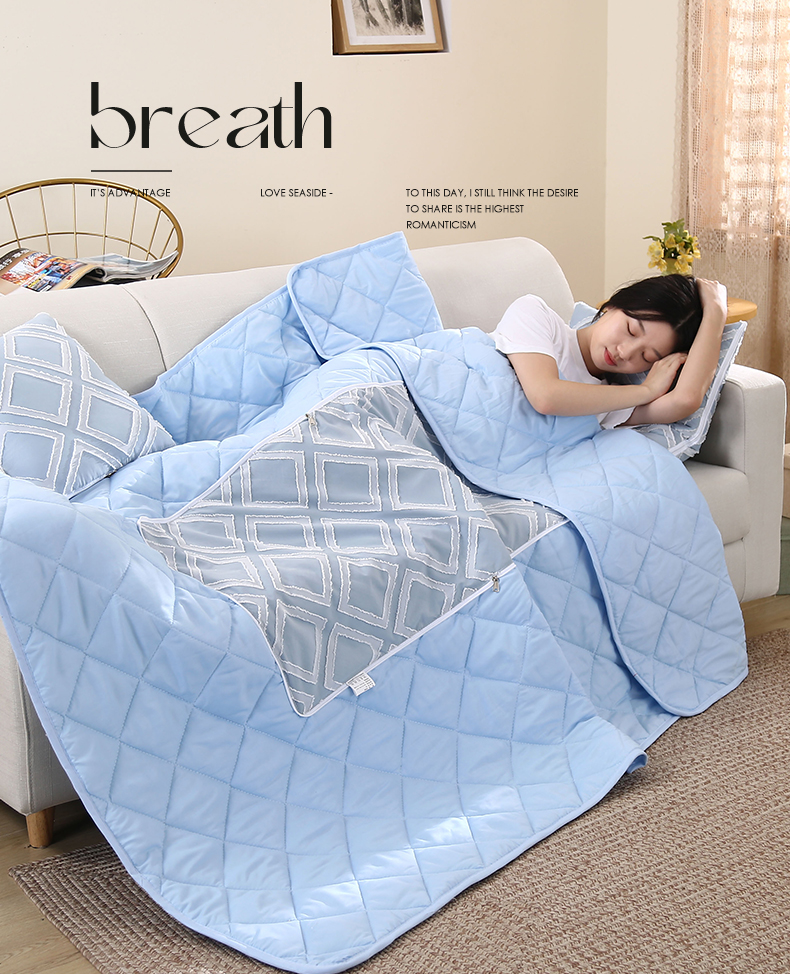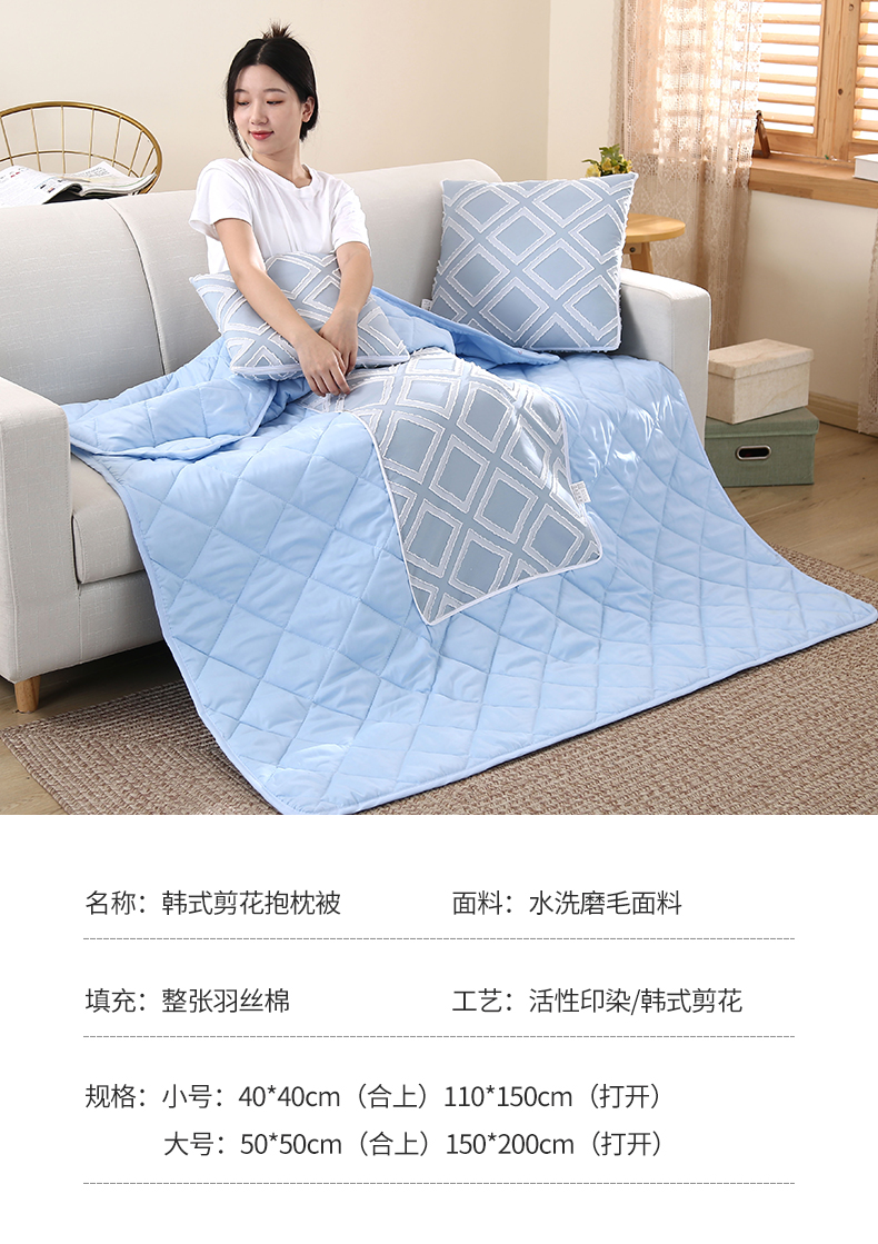 (总)金纳抱枕被 2023新款韩式剪花抱枕被,豆沙,浅卡其,烟花粉,珍珠灰,主图牛仔蓝