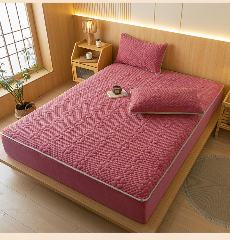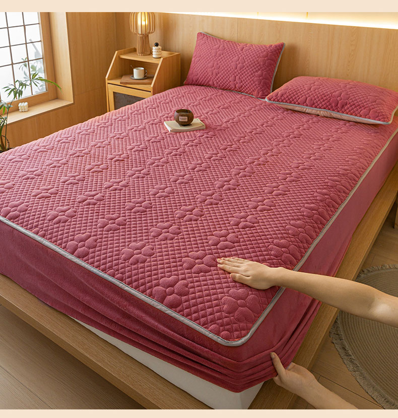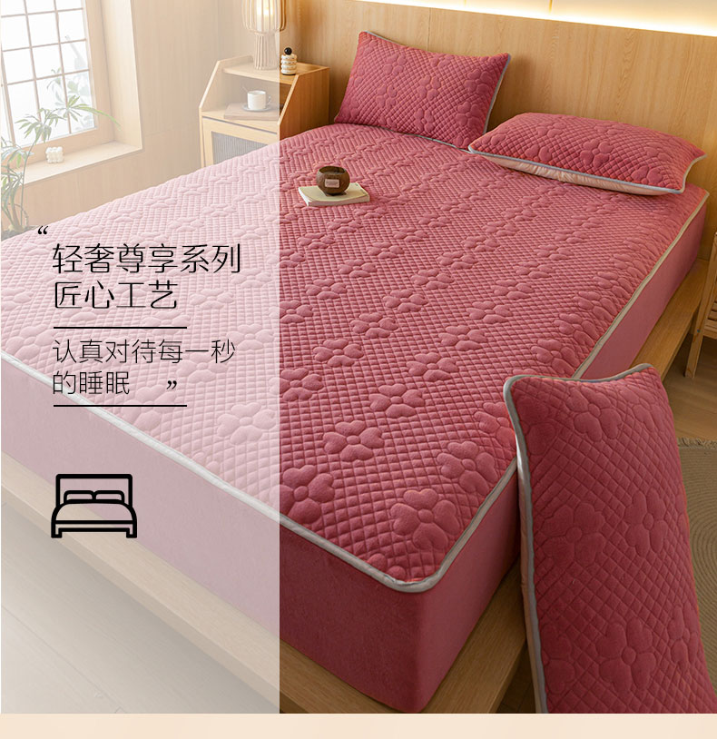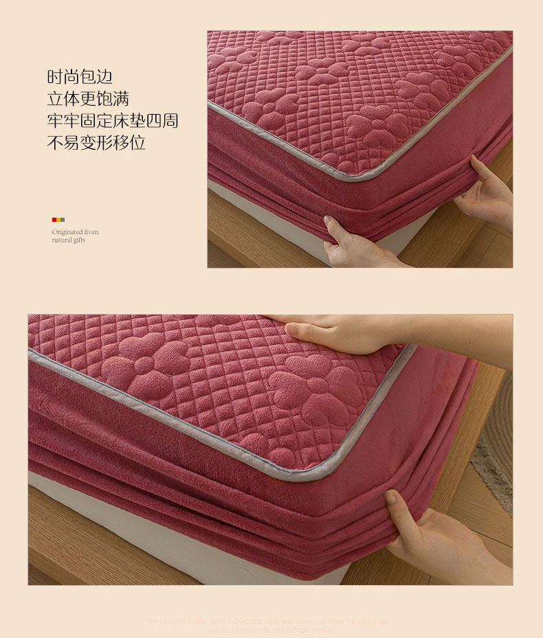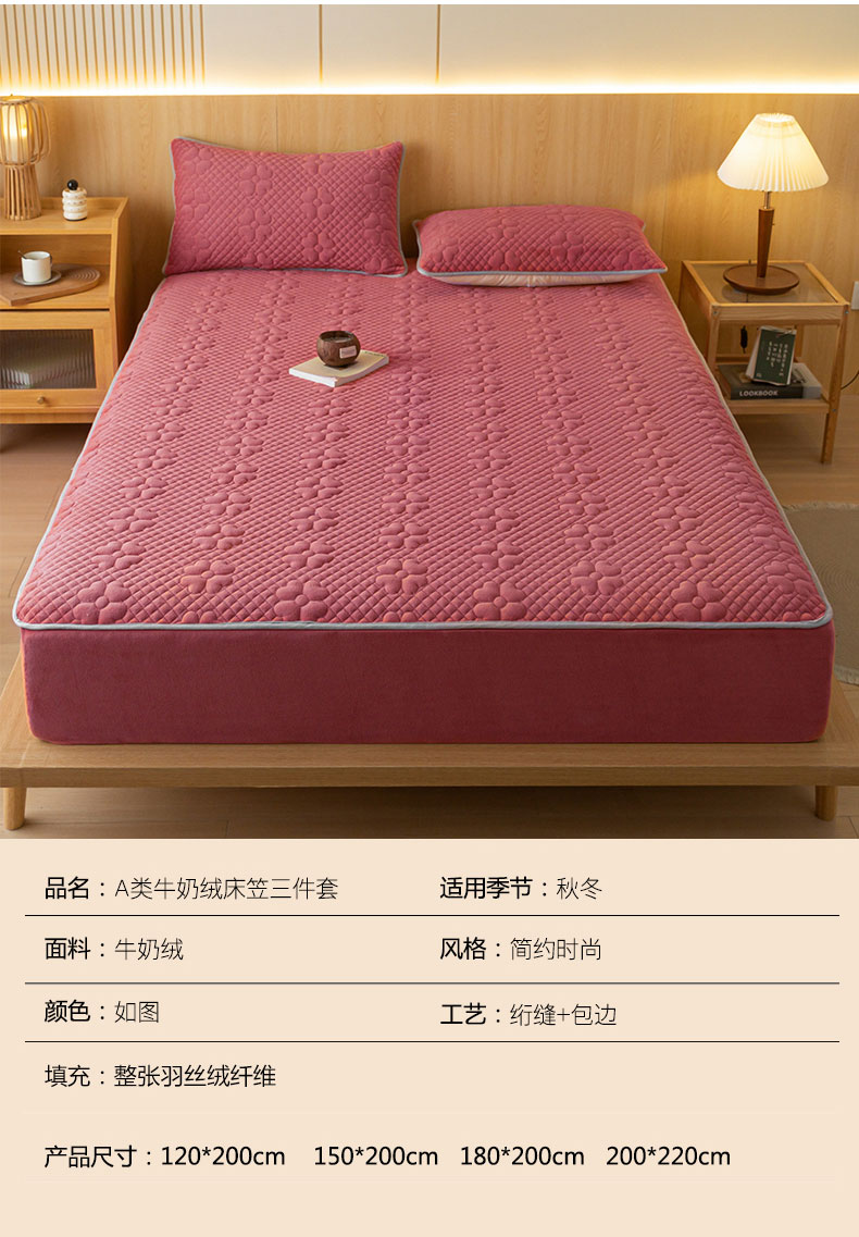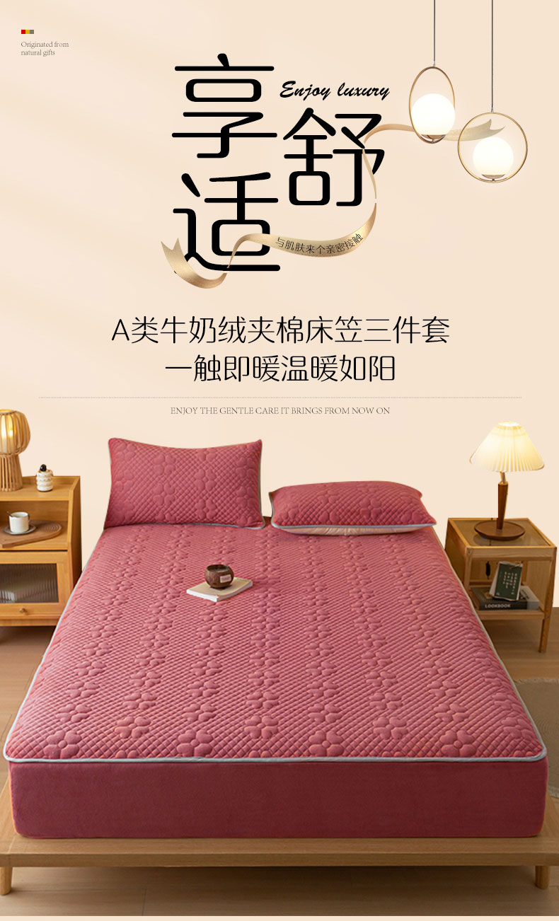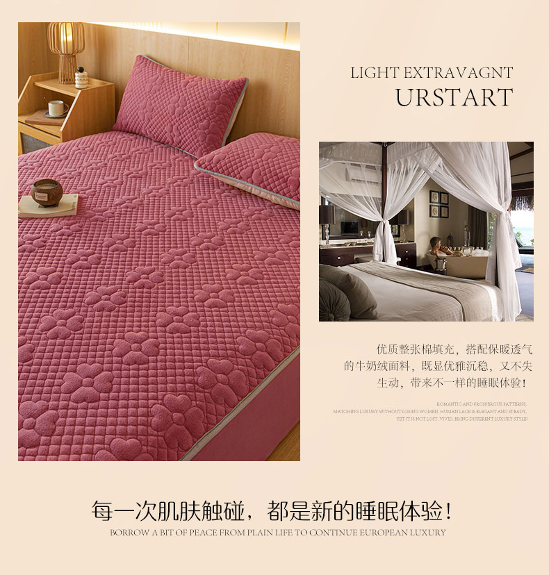 给笠2023新款A类夹棉牛奶绒床笠三件套 花漫系列 牛奶绒-花漫西瓜红