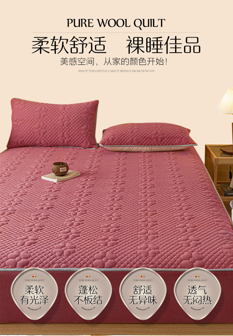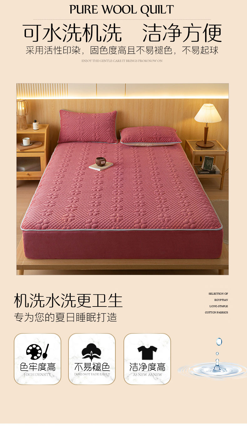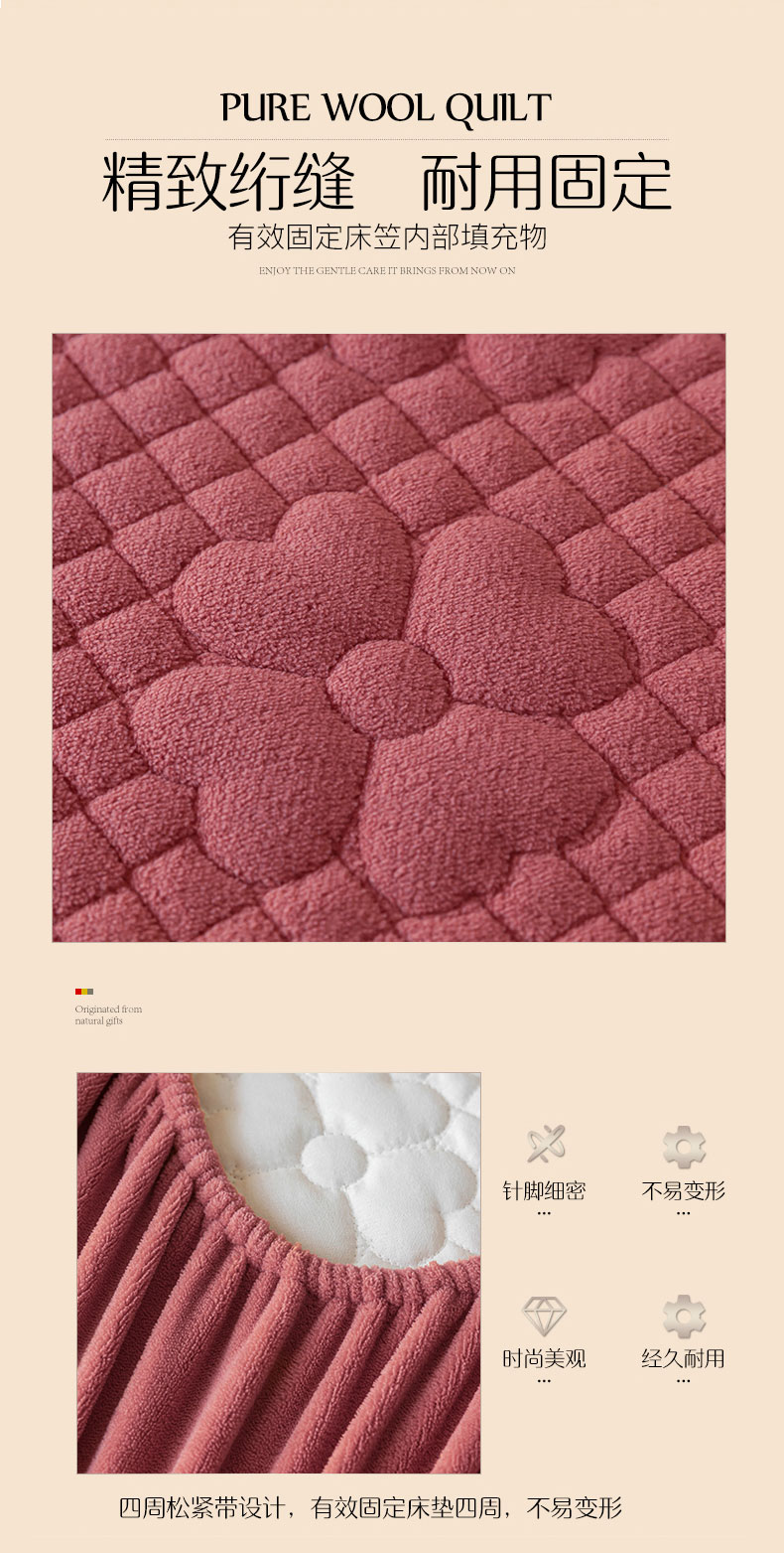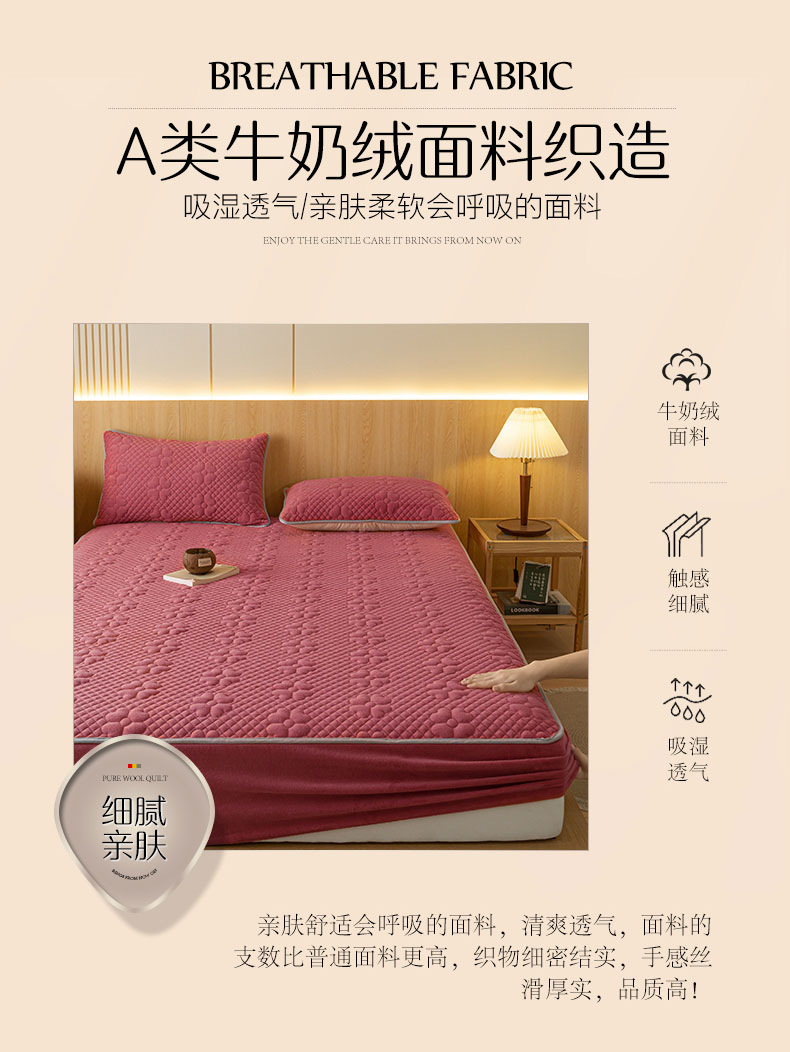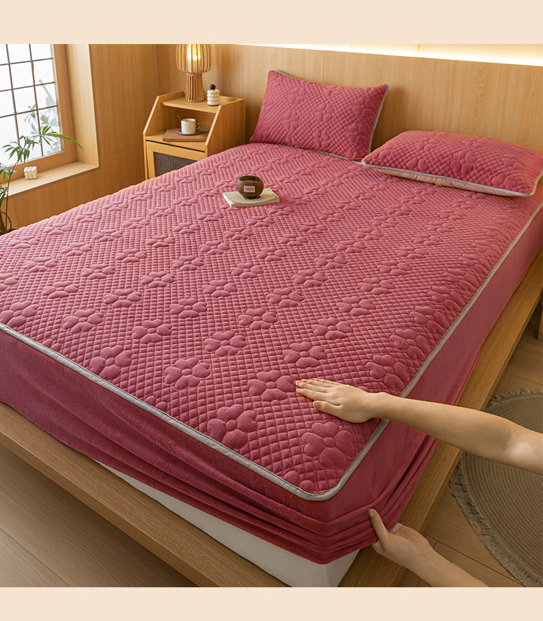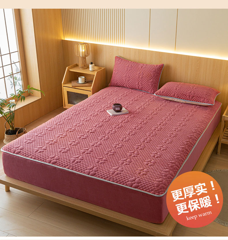 给笠2023新款A类夹棉牛奶绒床笠三件套 花漫系列 牛奶绒-花漫西瓜红