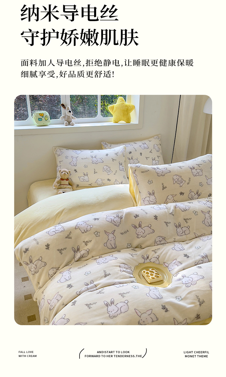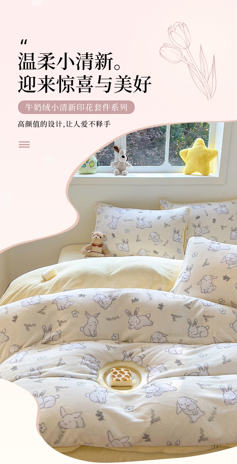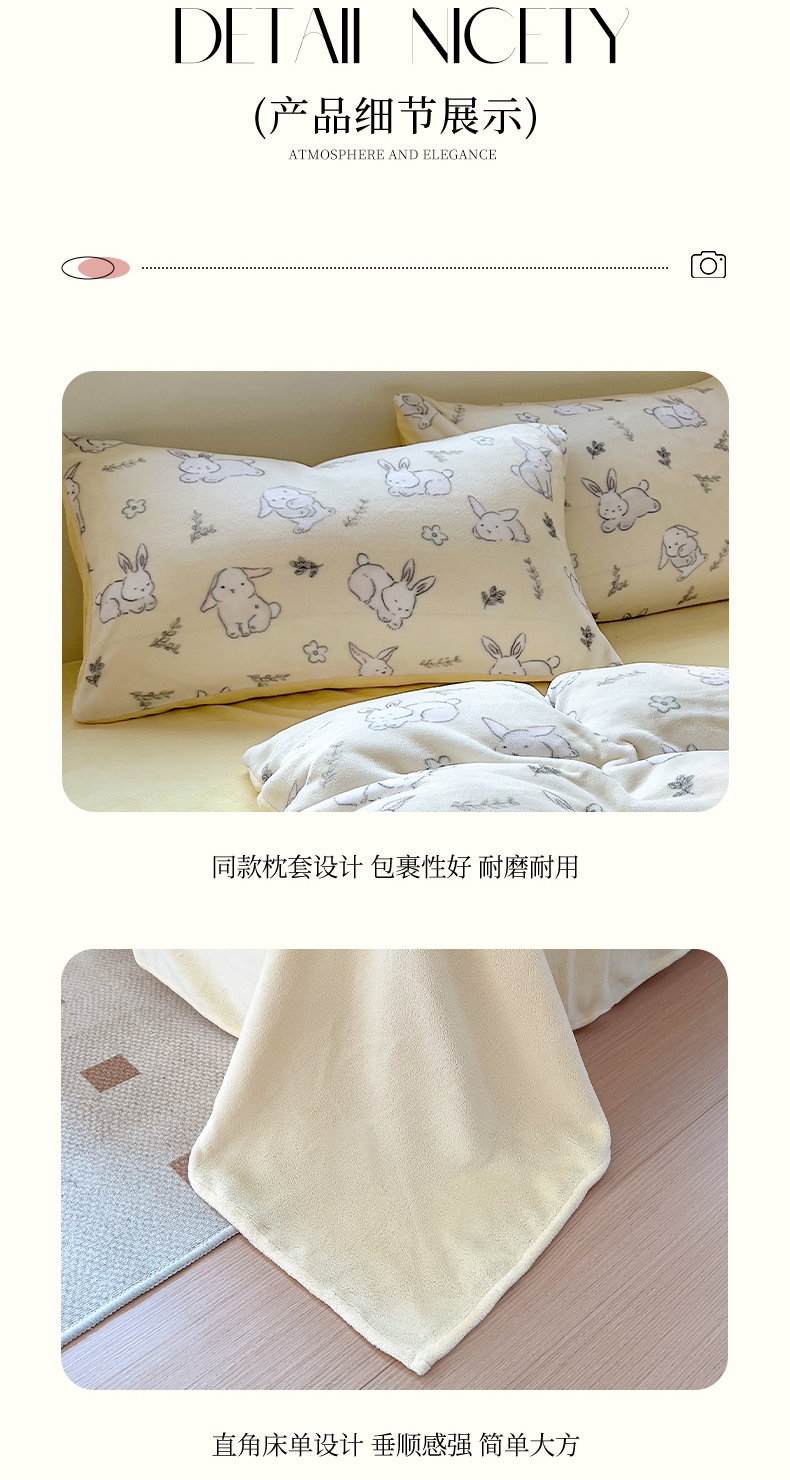 当前位置: 91家纺网 > 商品网购 > 床品套件 > 四件套 > 牛奶绒四件套 > 山茶家纺2023新款高克重印花牛奶绒四件套 奶黄兔