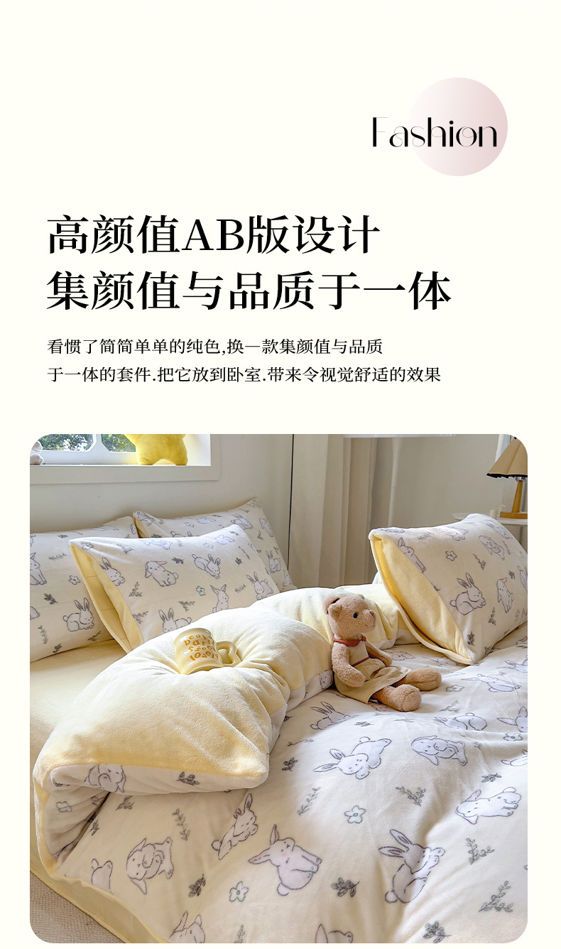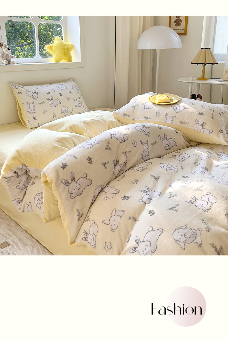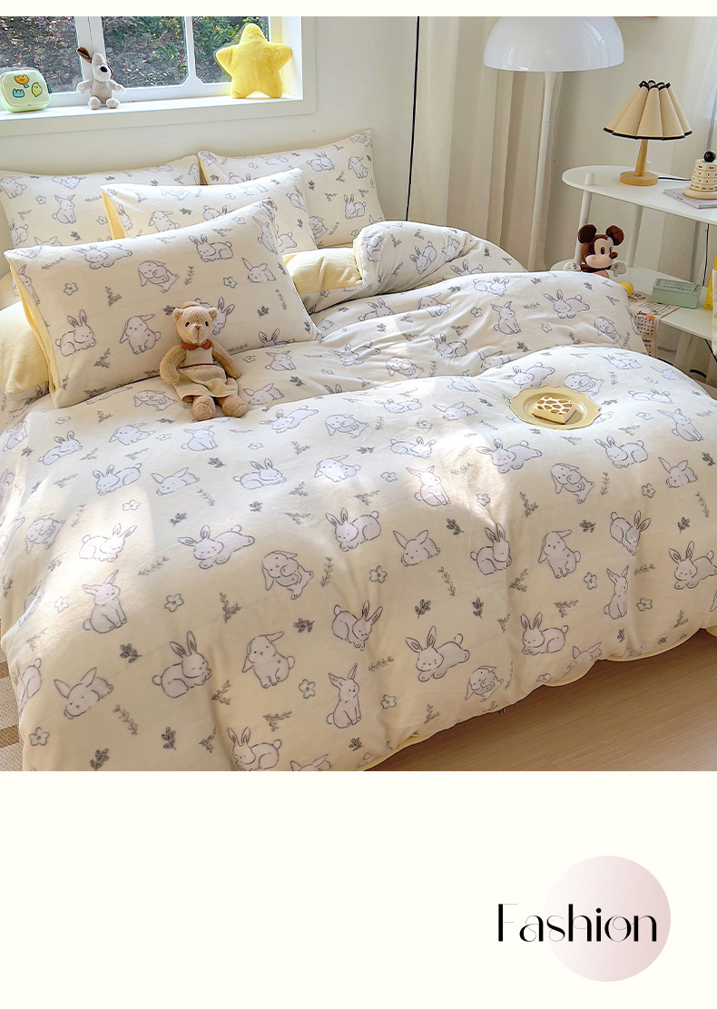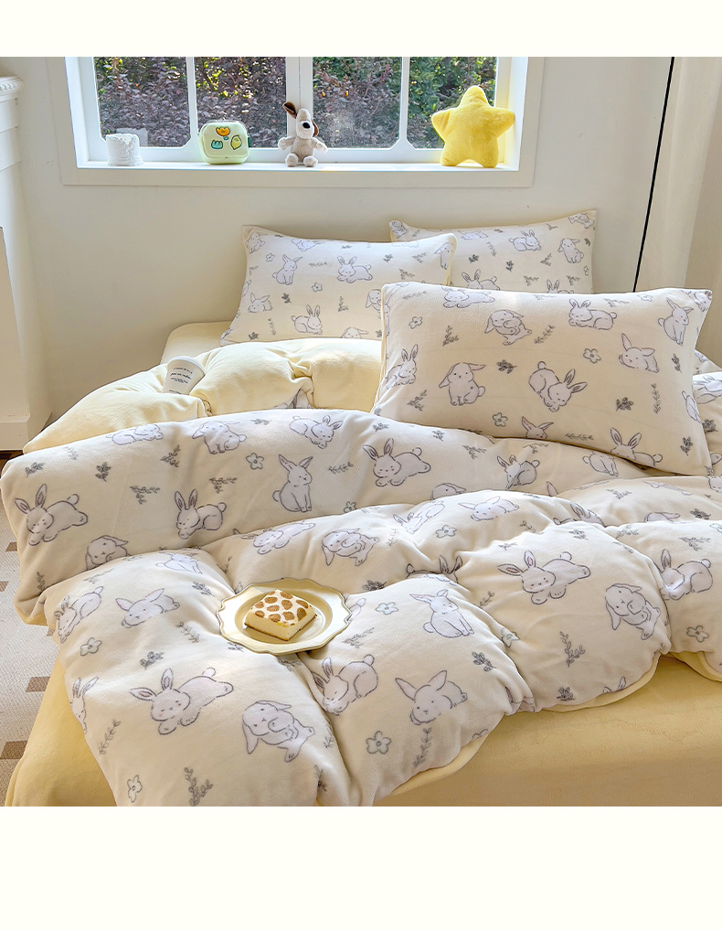 当前位置: 91家纺网 > 商品网购 > 床品套件 > 四件套 > 牛奶绒四件套 > 山茶家纺2023新款高克重印花牛奶绒四件套 奶黄兔
