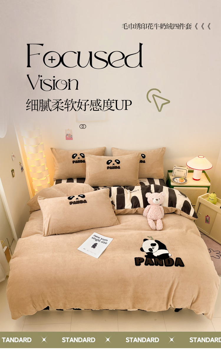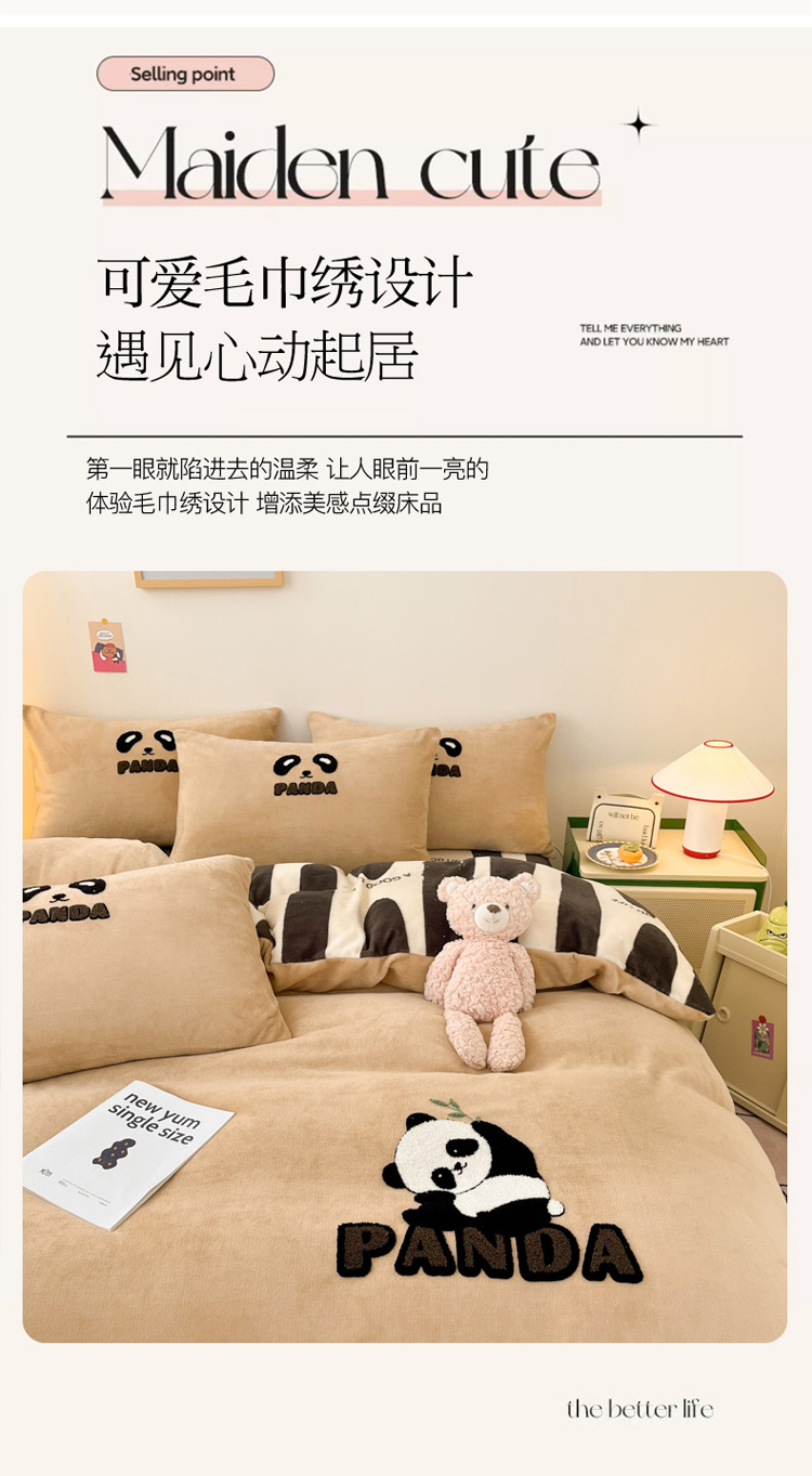 当前位置: 91家纺网 > 商品网购 > 床品套件 > 四件套 > 牛奶绒四件套 > 2023新款牛奶绒印花毛巾绣单被套 被套150*200cm 毛巾绣 毛巾绣-熊猫崽崽