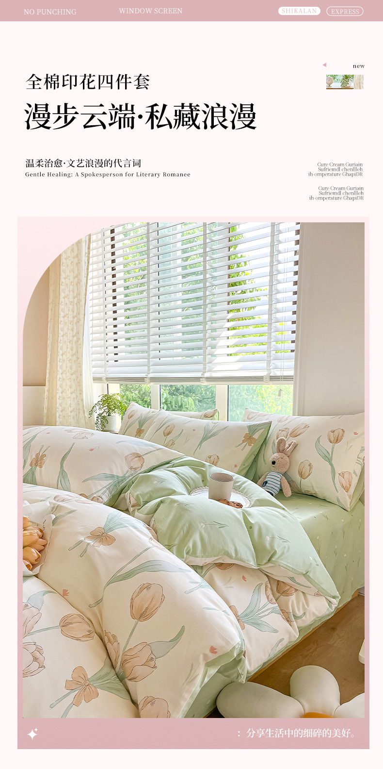 (总)芷卧 2025新款13372全棉碎花小清新四件套,白露,点点,阿芙,安琦,花仙子,花小羊,蓝花兔,落苏,绿玫瑰,清风,兔花园,月野,栀夏,玫瑰庄园