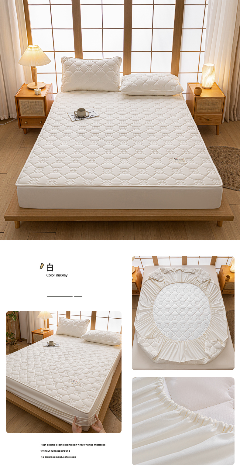 商品名称:米粒家纺 2023新款A类大豆纤维夹棉床笠系列 幸运花-白