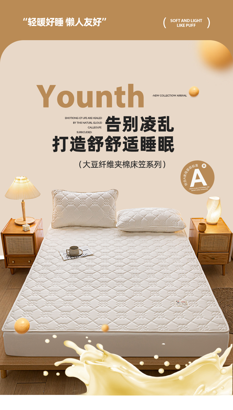 (总)米粒家纺 2023新款A类大豆纤维夹棉床笠系列,格调-白,格调-粉,格调-卡其,格调-蓝,格调-浅灰,格调-深灰,幸运花-白,幸运花-粉,幸运花-卡其,幸运花-蓝,幸运花-浅灰,幸运花-深灰