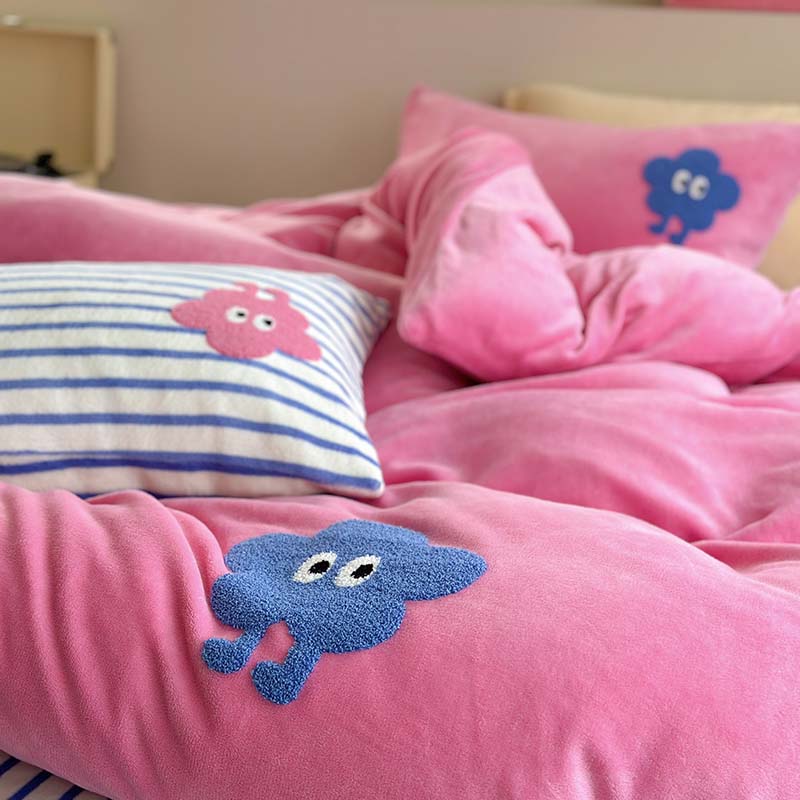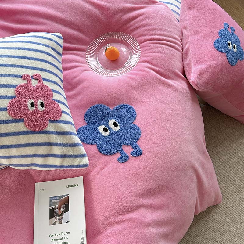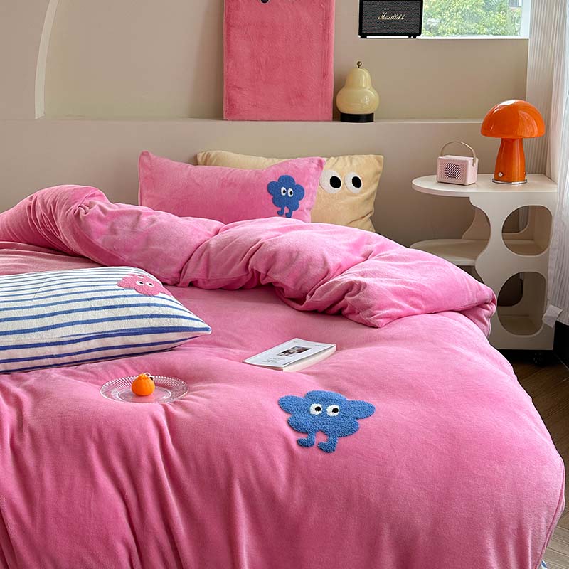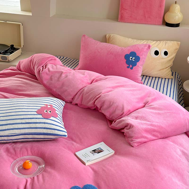 (总)柚子YOUTH 2025新款加厚牛奶绒卡通毛巾绣四件套-印加绣送同款毛毯,蛋糕小狗,公主猫,头套猫,兔兔花园,小伙伴,雪纳瑞