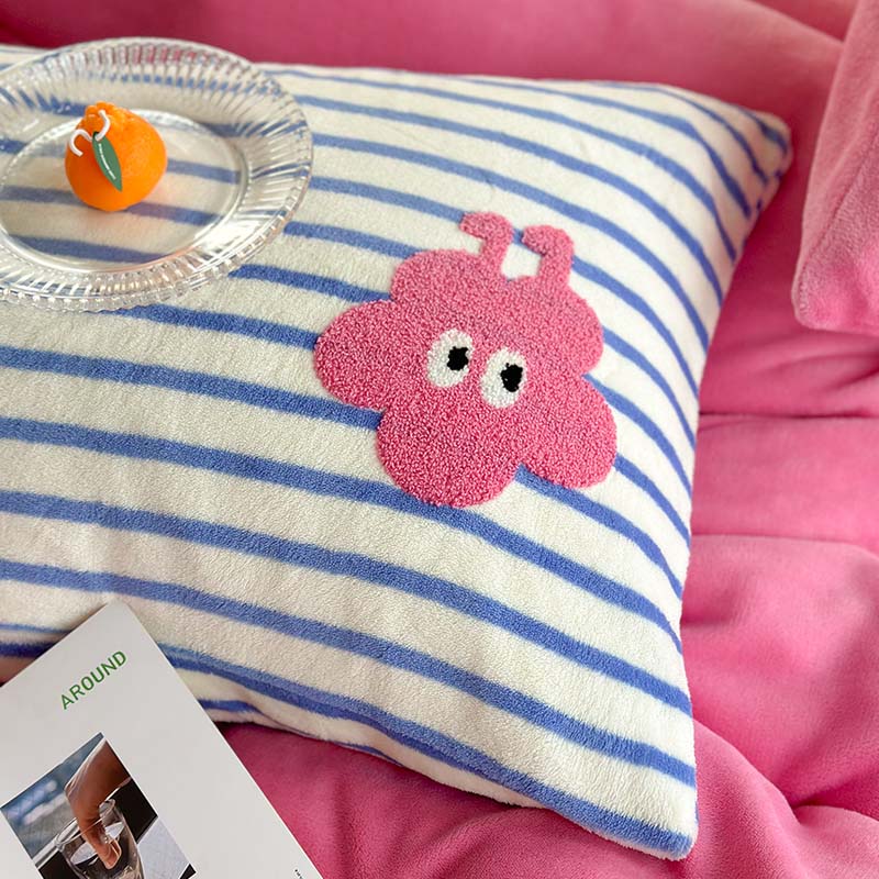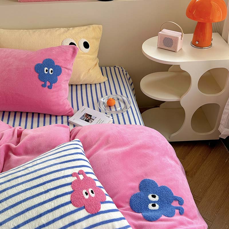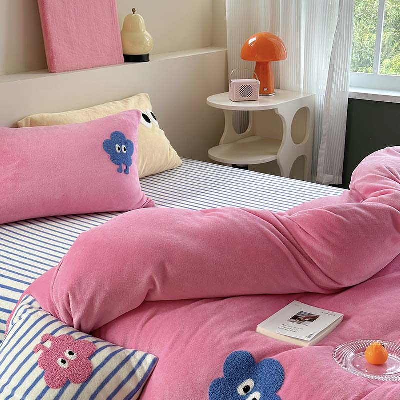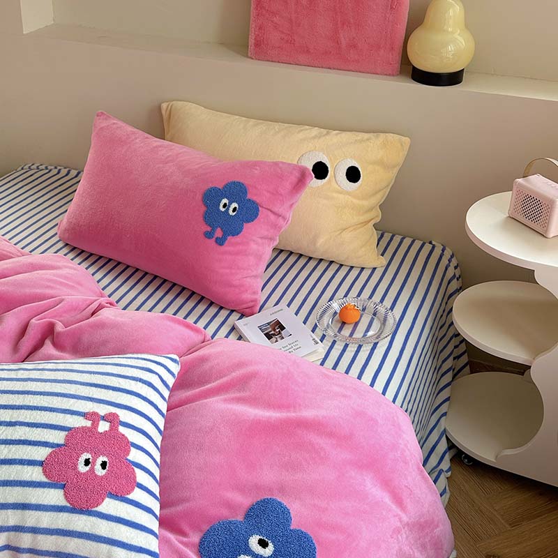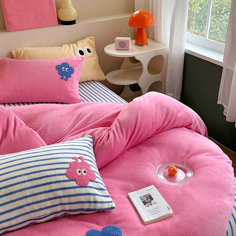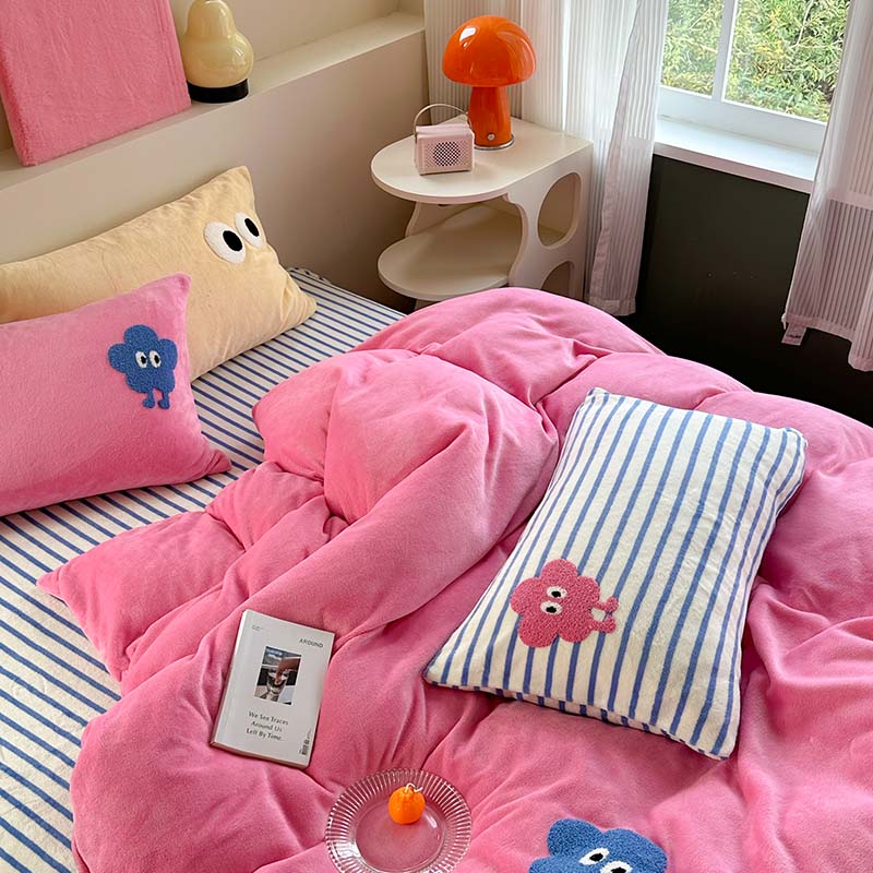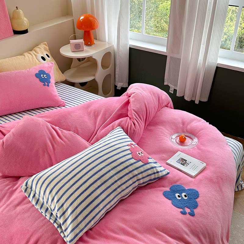 柚子 2023新款高克重牛奶绒多巴胺条纹毛巾绣四件套 丸趣