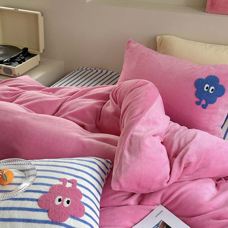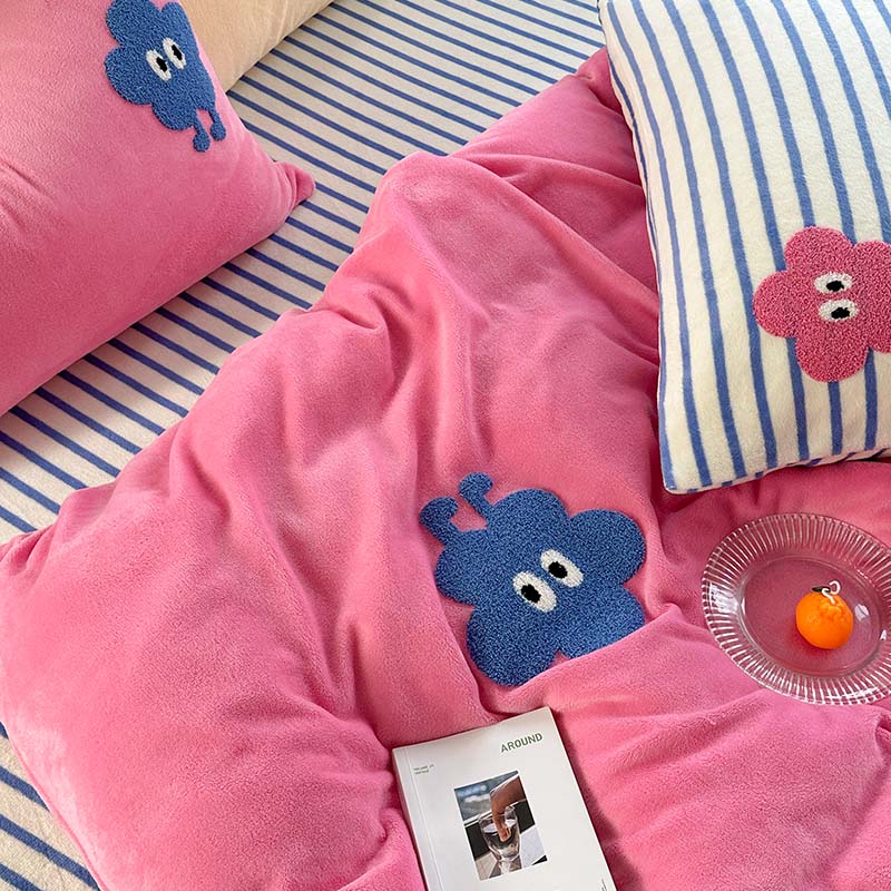 (总)柚子YOUTH 2025新款双面泰迪绒毛巾绣四件套,甜甜圈,快乐企鹅,森林聚会,甜酷KT,小茄子,雪人王国