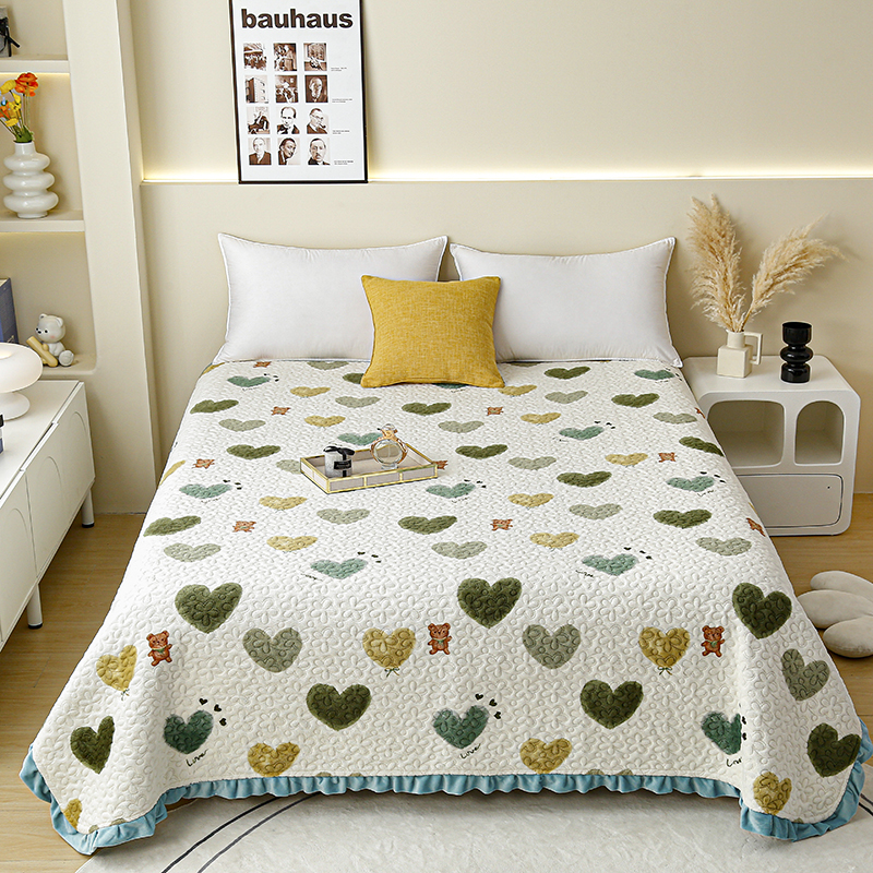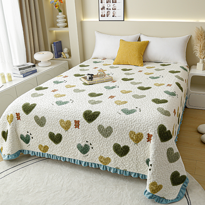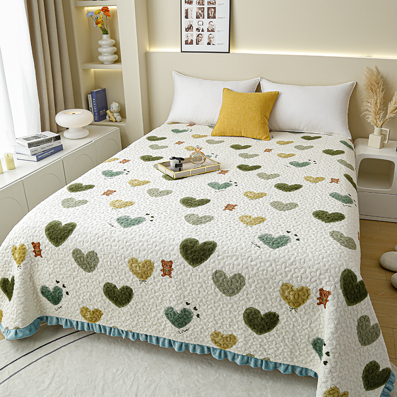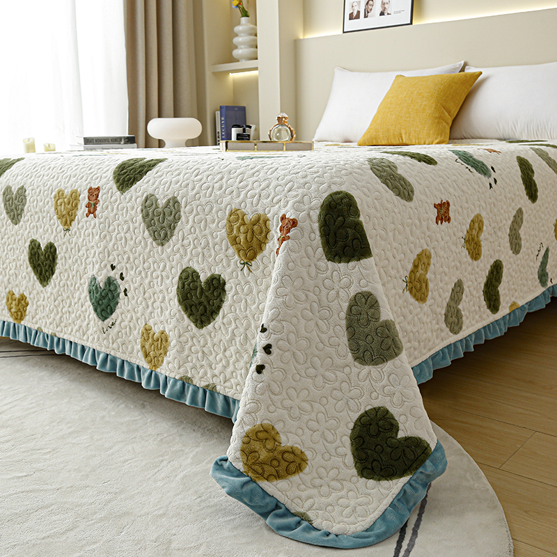 家维 2025年新款牛奶绒床盖花边款床盖 缤纷情人节(绿)