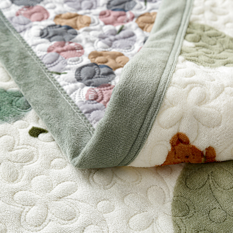 (总)家维 2025新款印花款牛奶绒床盖,蓝爱心,绿小兔,山茶花,熊宝宝,英伦时光,紫爱心
