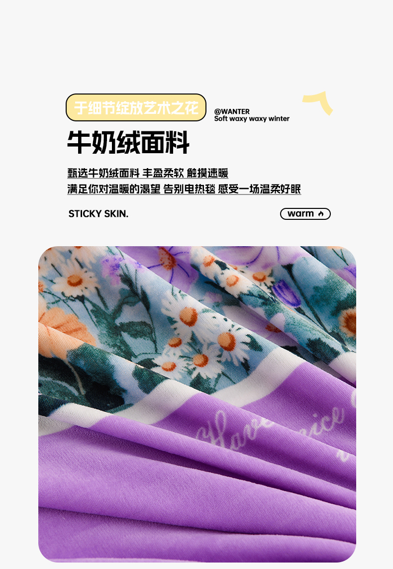 晚静 2025新款加厚保暖印花牛奶绒单品被套 向阳花开,向阳花开