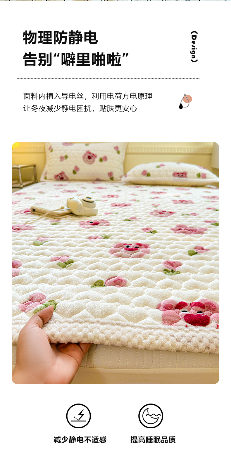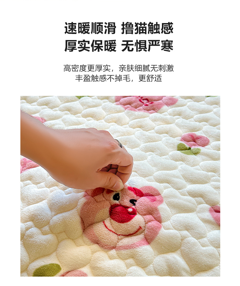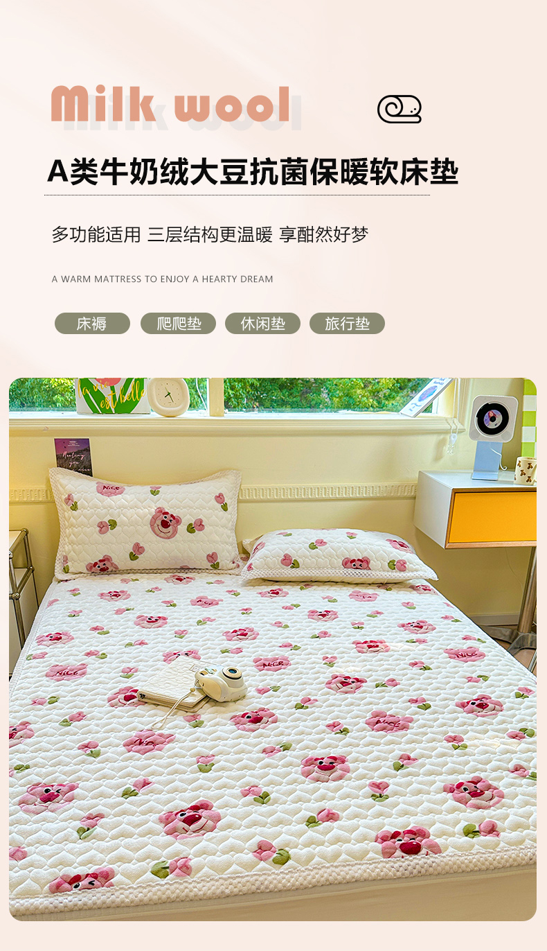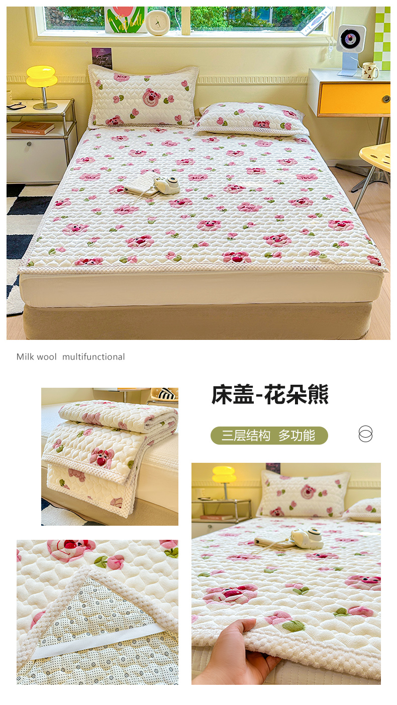商品名称:宜代光年 2023新款牛奶绒夹棉床垫床盖 床盖-花朵熊