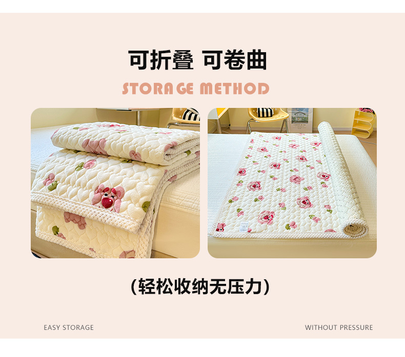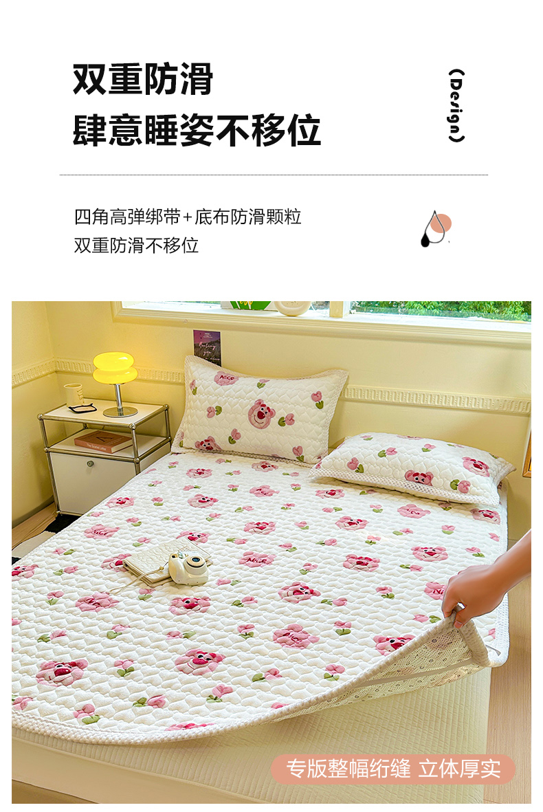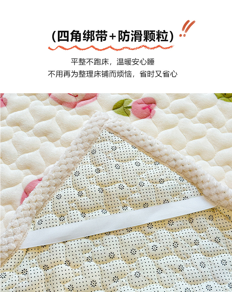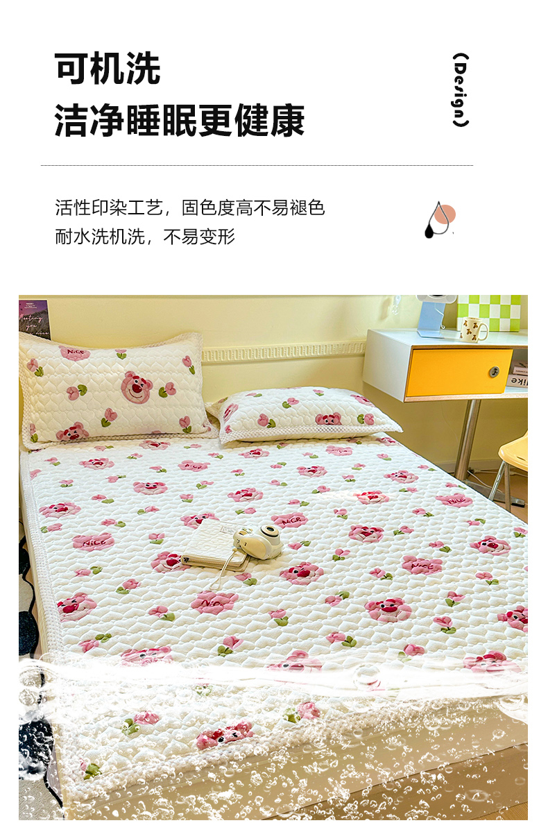 商品名称:宜代光年 2023新款牛奶绒夹棉床垫床盖 床盖-花朵熊