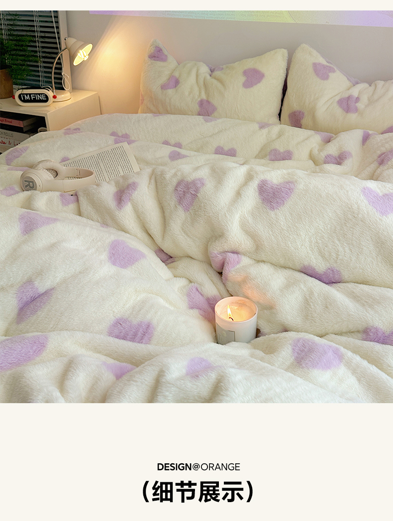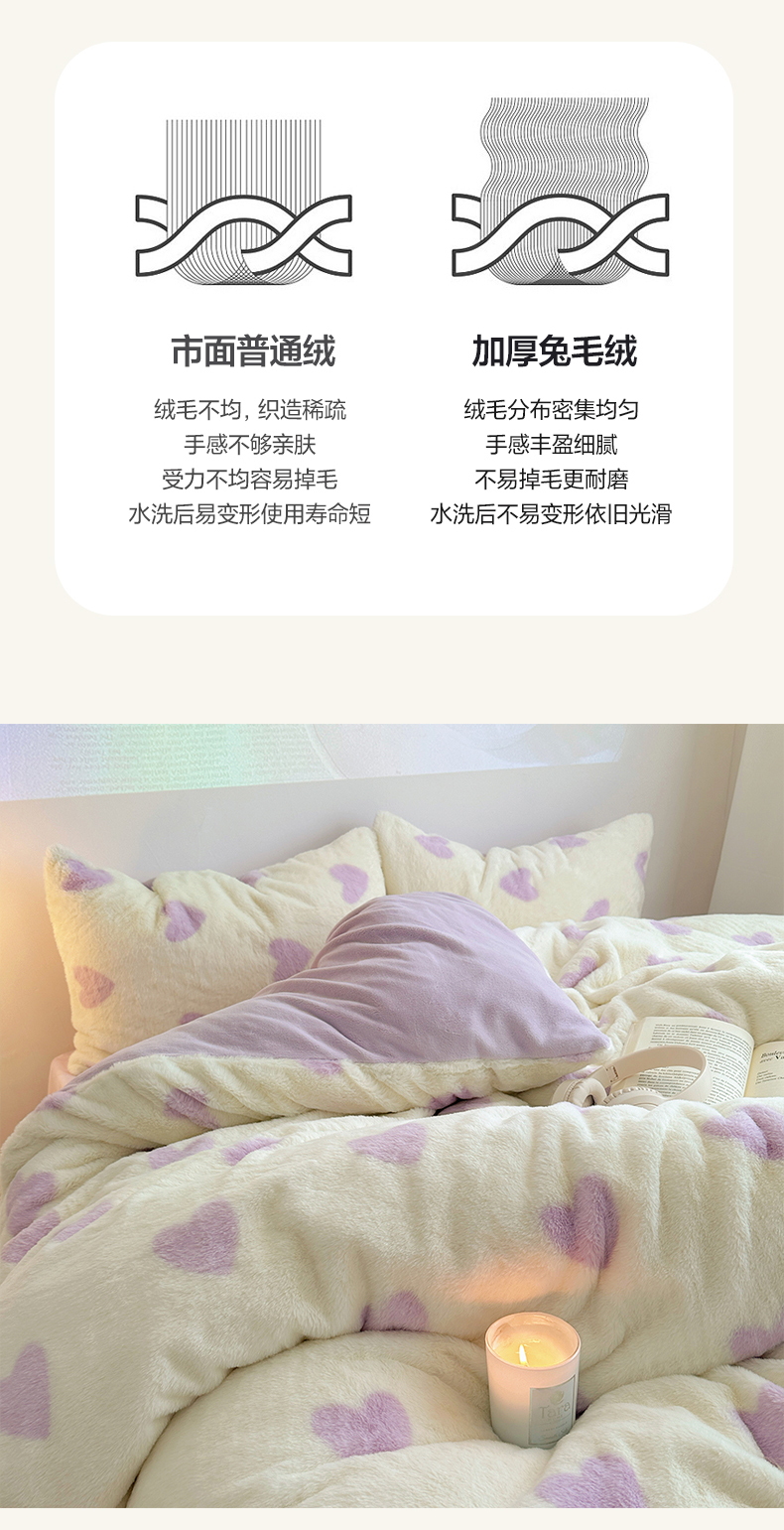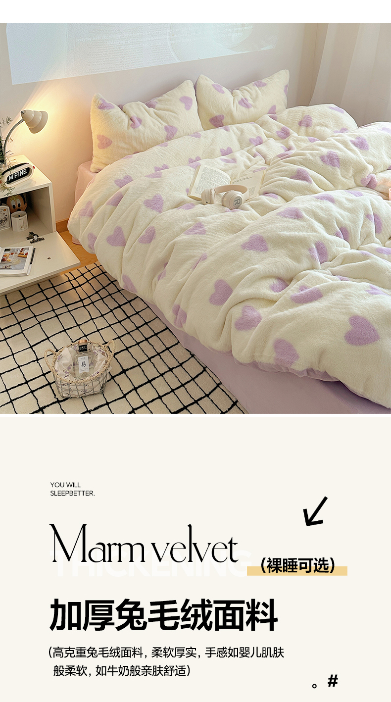商品名称:雅居纺家纺 2023新款兔毛印花牛奶绒四件套 爱心-紫