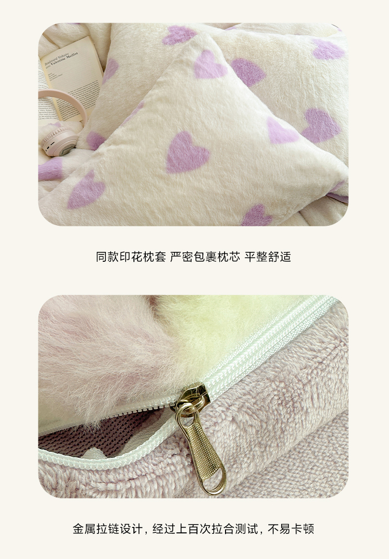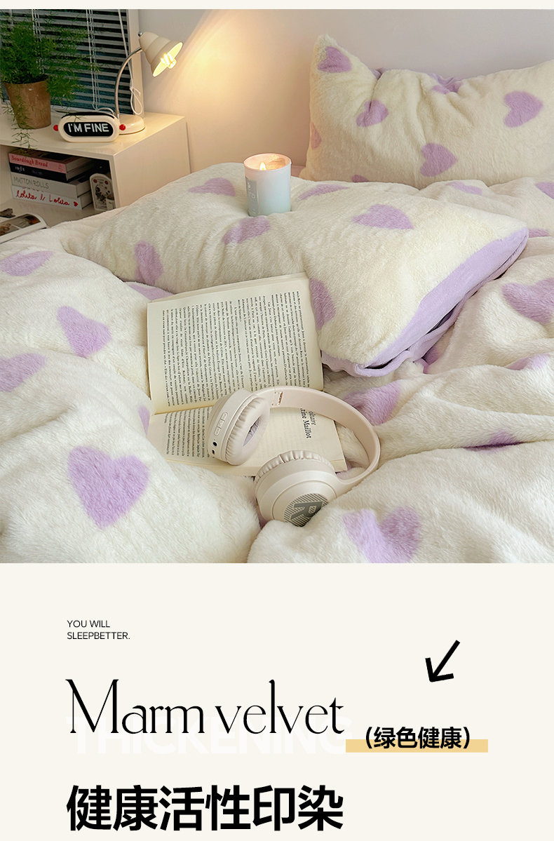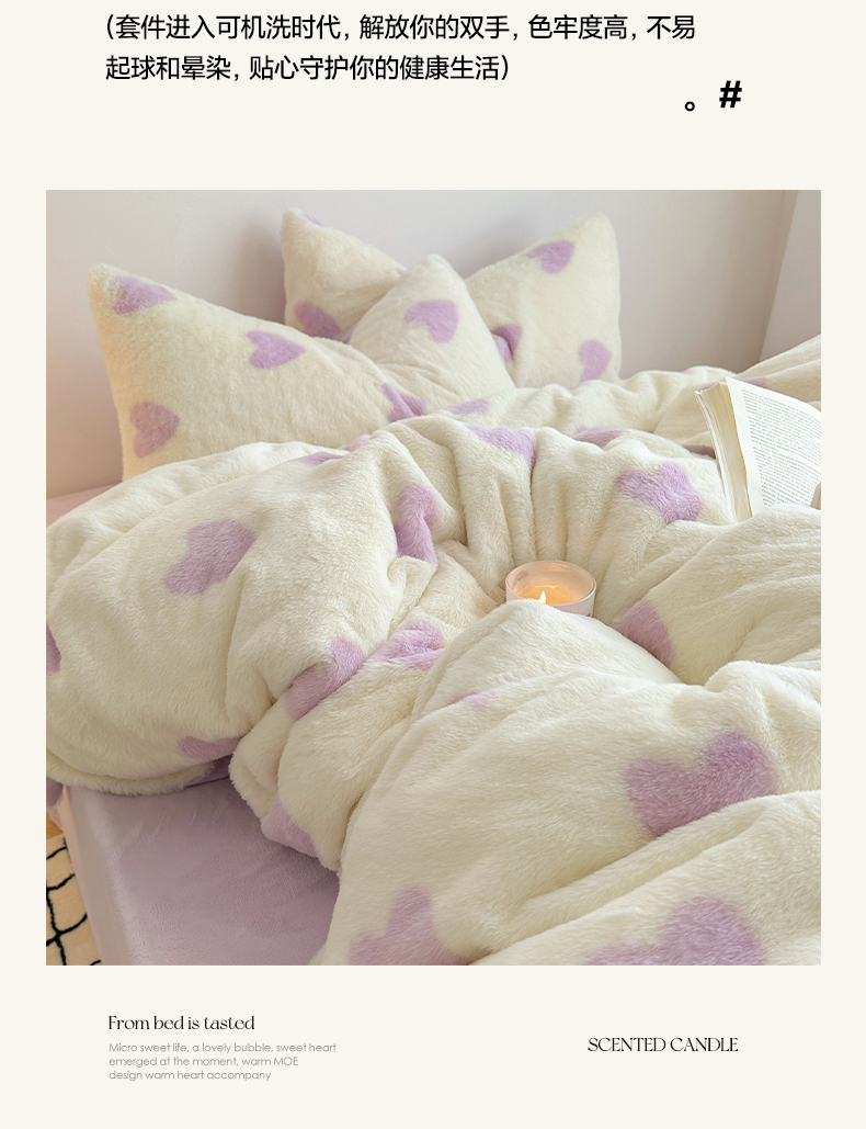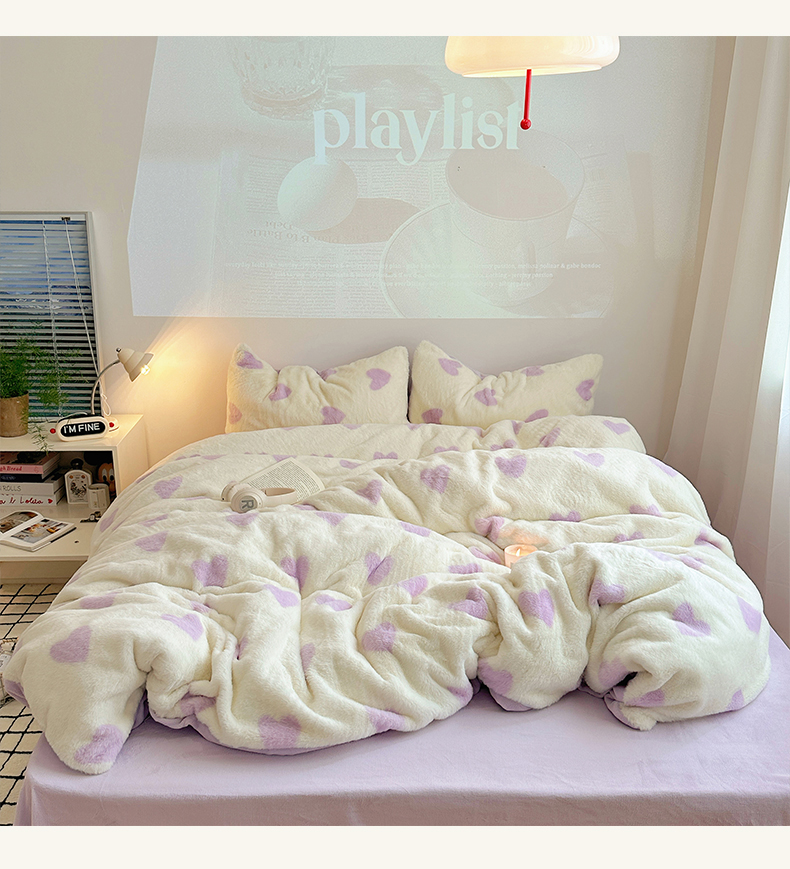 商品名称:雅居纺家纺 2023新款兔毛印花牛奶绒四件套 爱心-紫