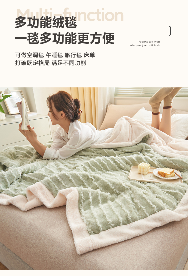 商品名称:吾诺家居 2023新款流苏绒双层多功能毯 果绿流苏毯