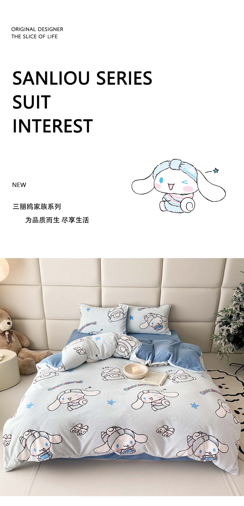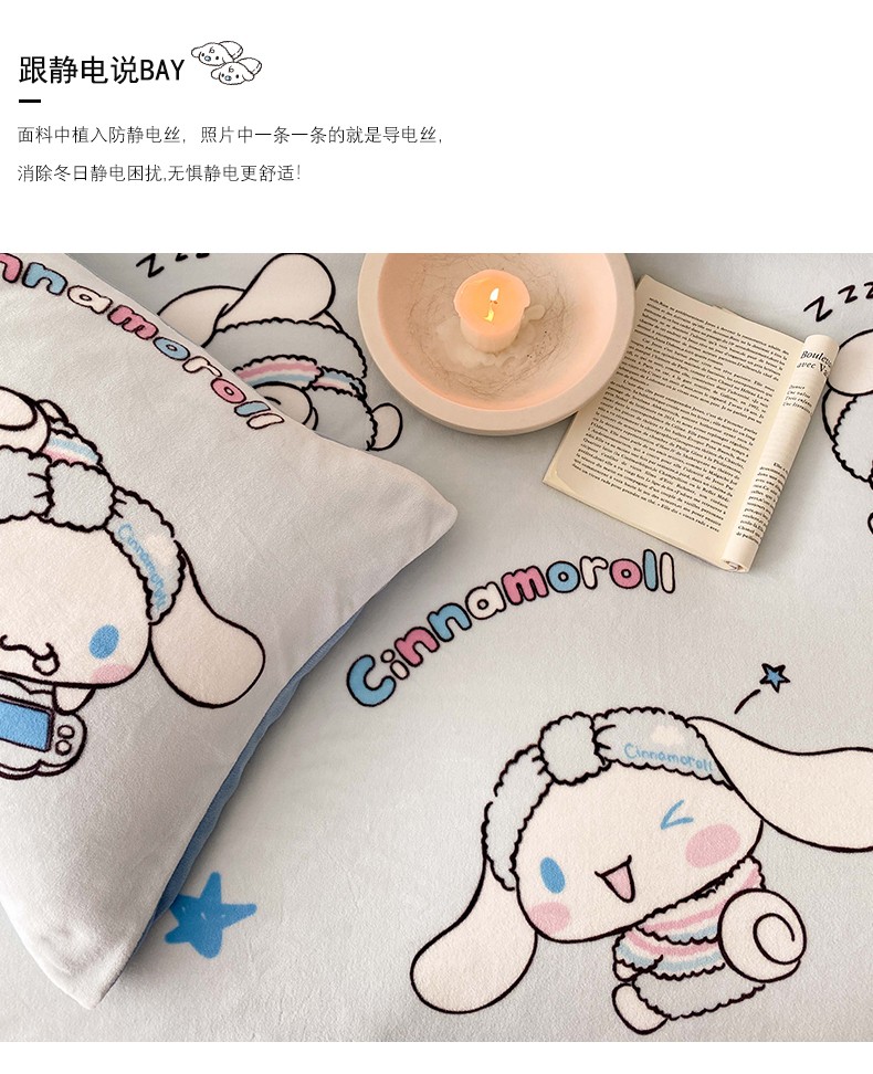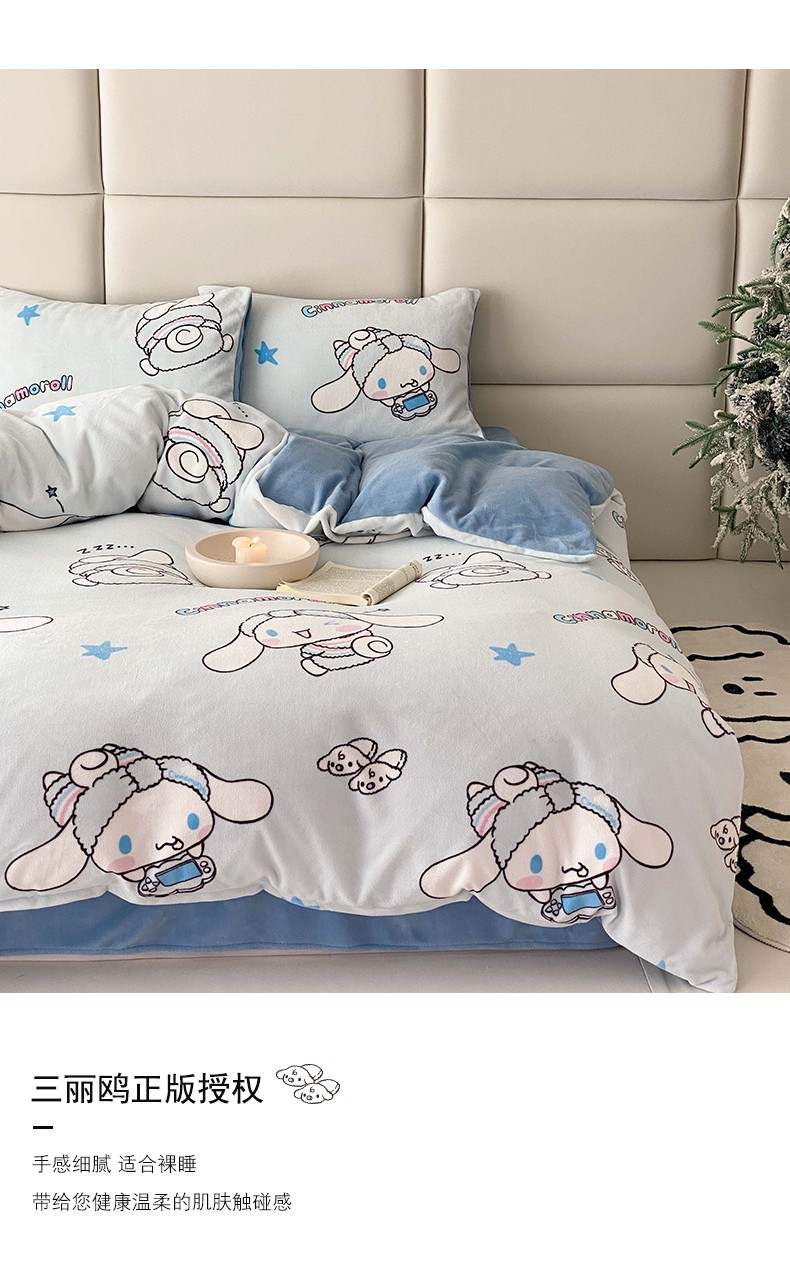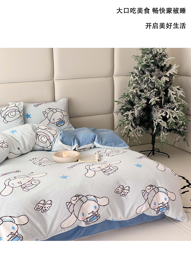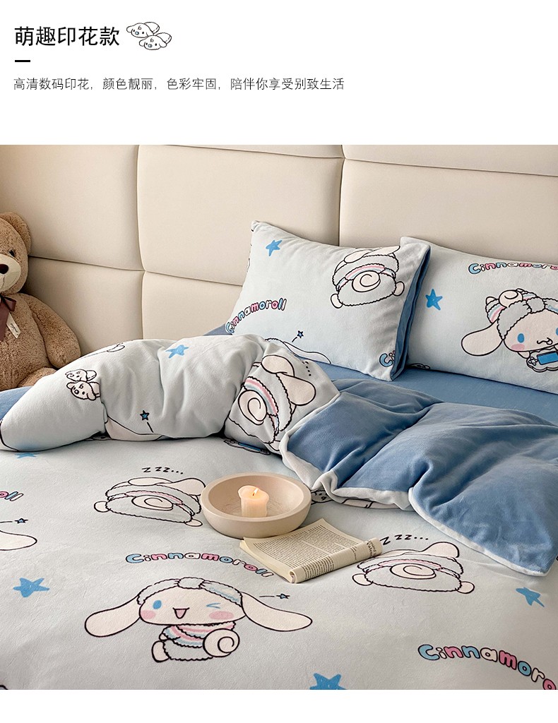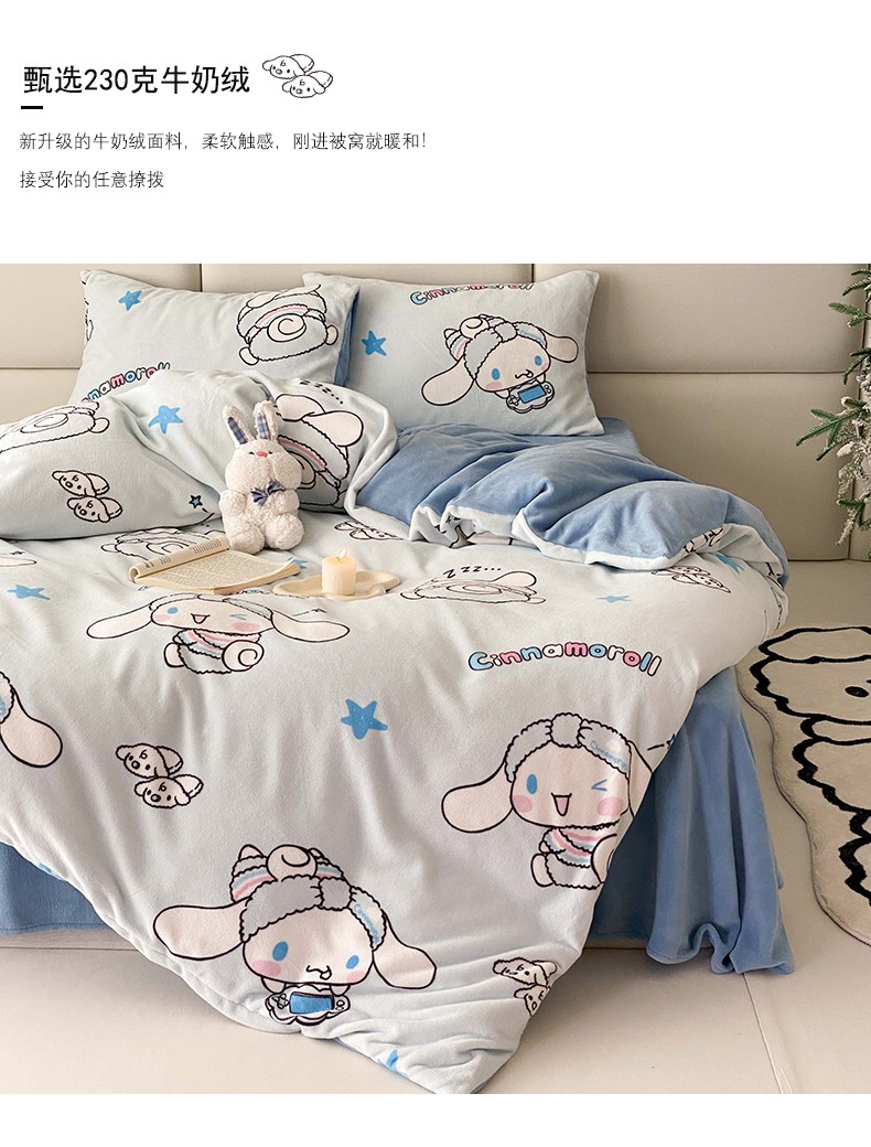 商品名称:Mr.pig猪先生 2023新款小版三丽鸥牛奶绒四件套 青绿玉桂狗绒
