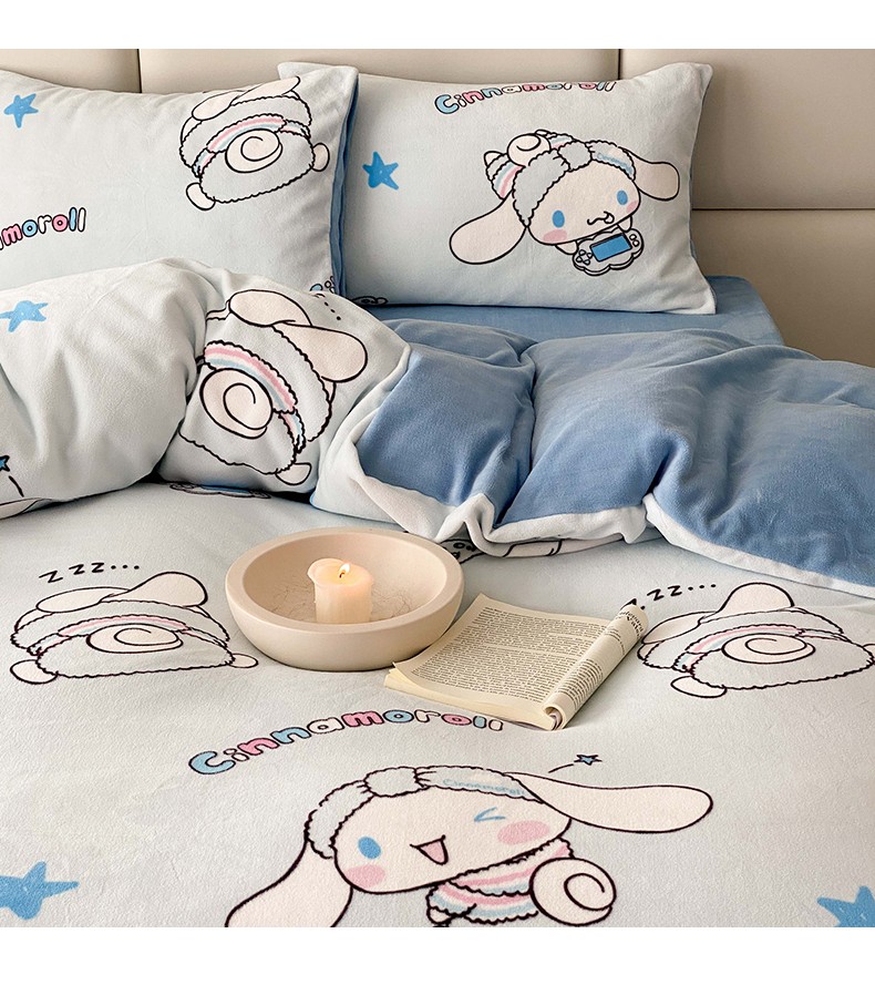Mr.pig猪先生 2023新款小版三丽鸥牛奶绒四件套 青绿玉桂狗绒