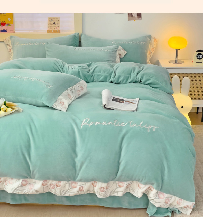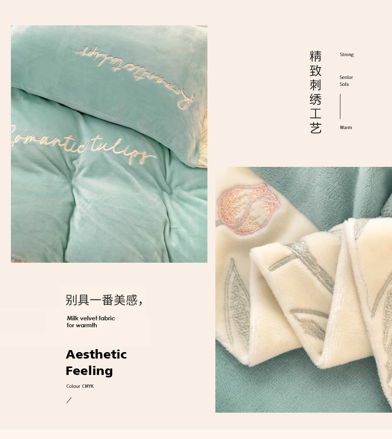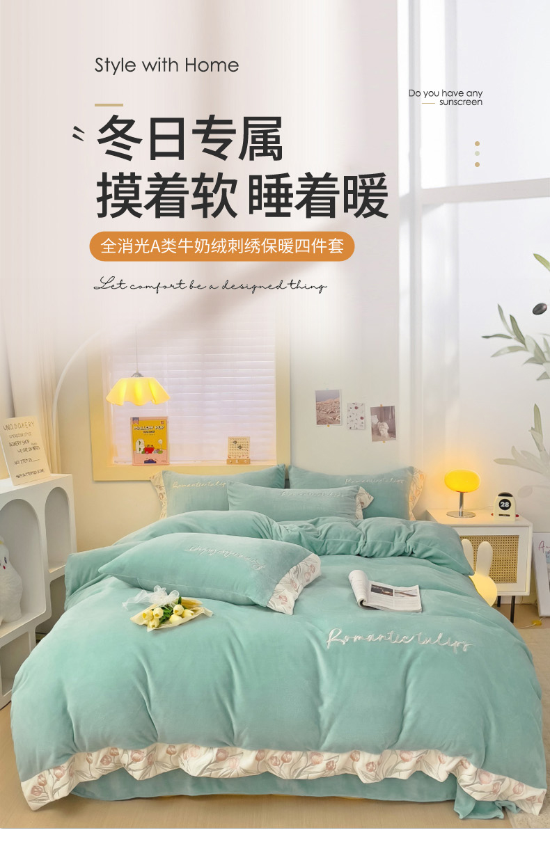 (总)星尚家纺 2024新款全消光A类230g牛奶绒刺绣保暖绒四件套-郁金香,淡雅粉,梵星绿,高级灰,蔷薇紫,婴儿蓝,樱花粉