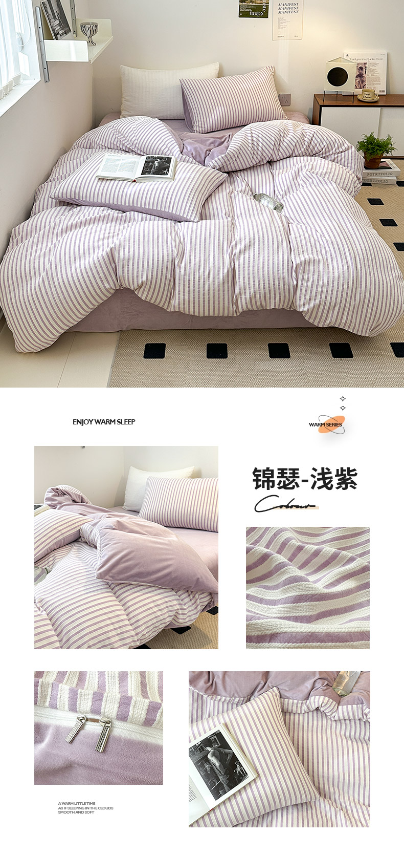 商品名称:怡家居 2023新款色织棉麻提花加绒四件套 锦瑟-浅紫