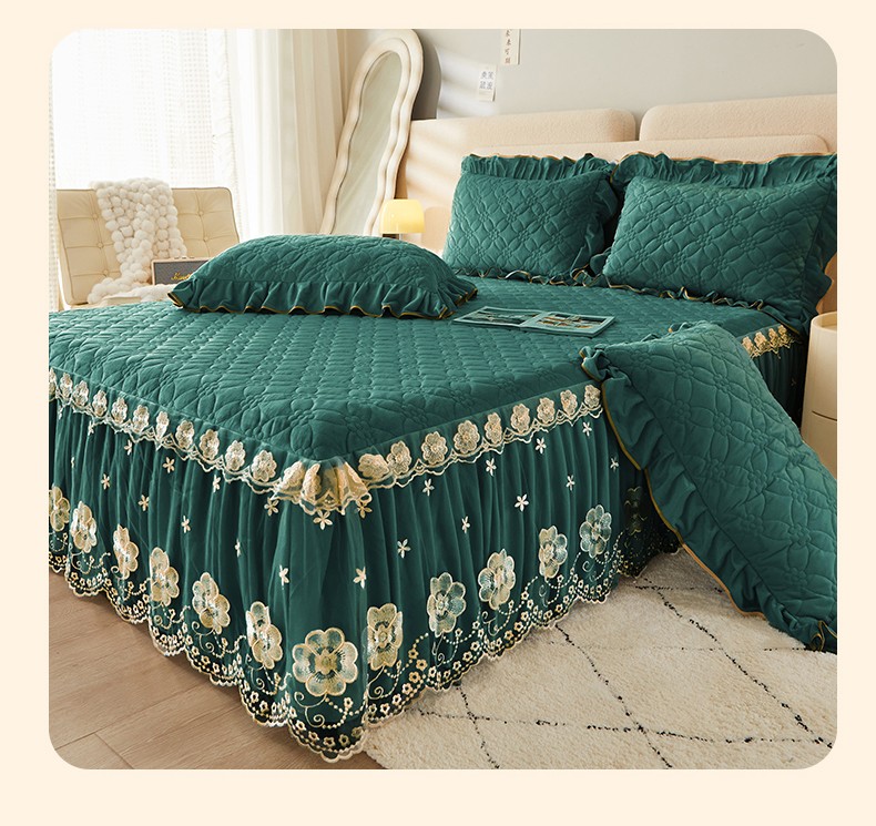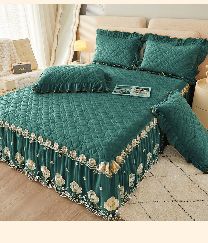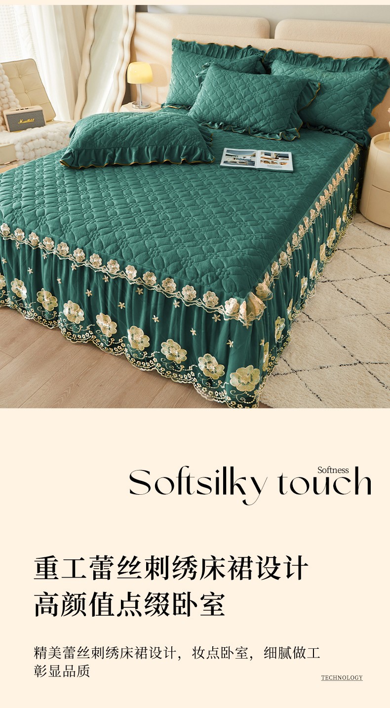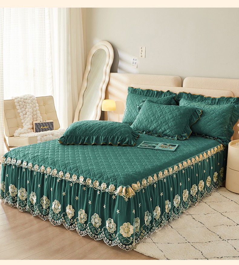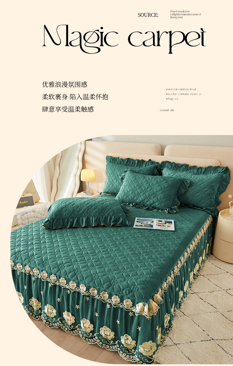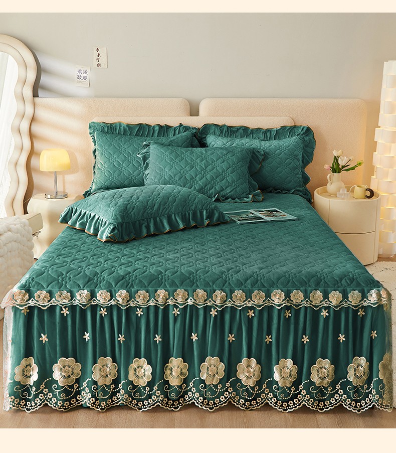 • 91家纺网 家纺一手货源 找家纺 罗艺轩 2024秋冬新款水晶绒花样年华全夹棉加厚床裙三件套 花样年华-橄榄绿