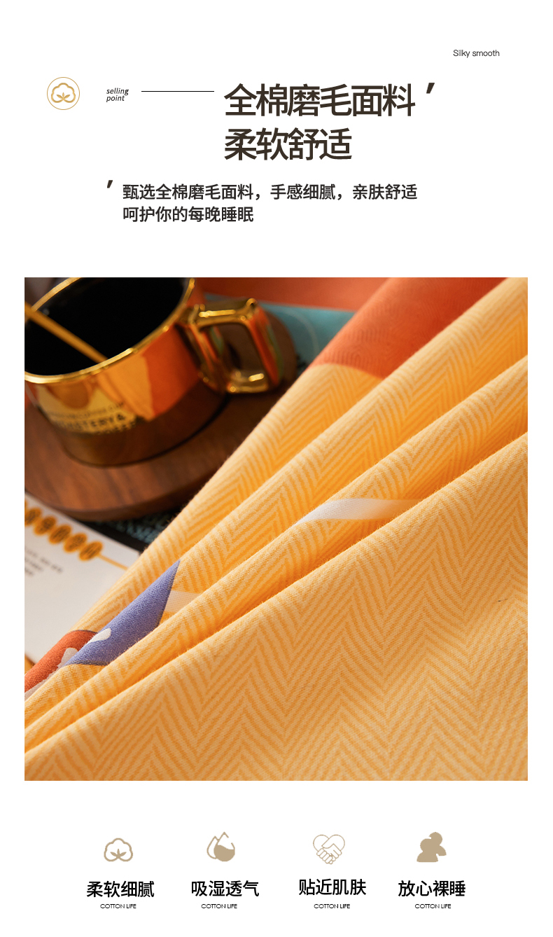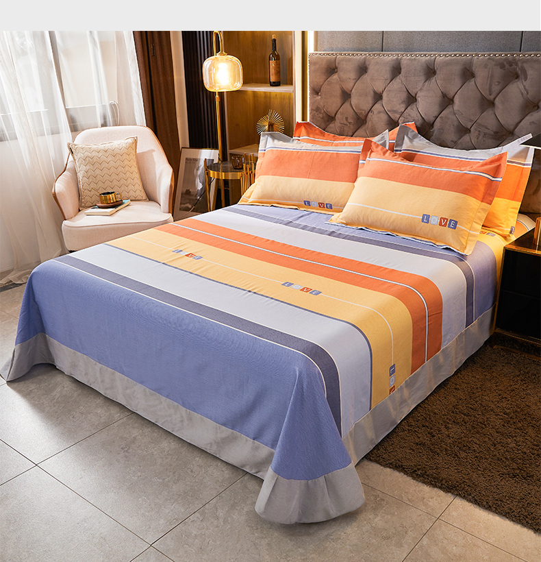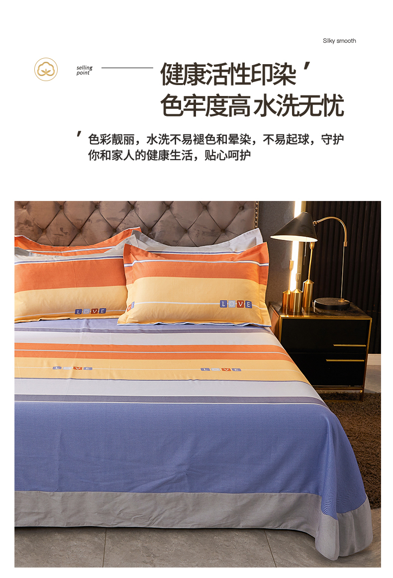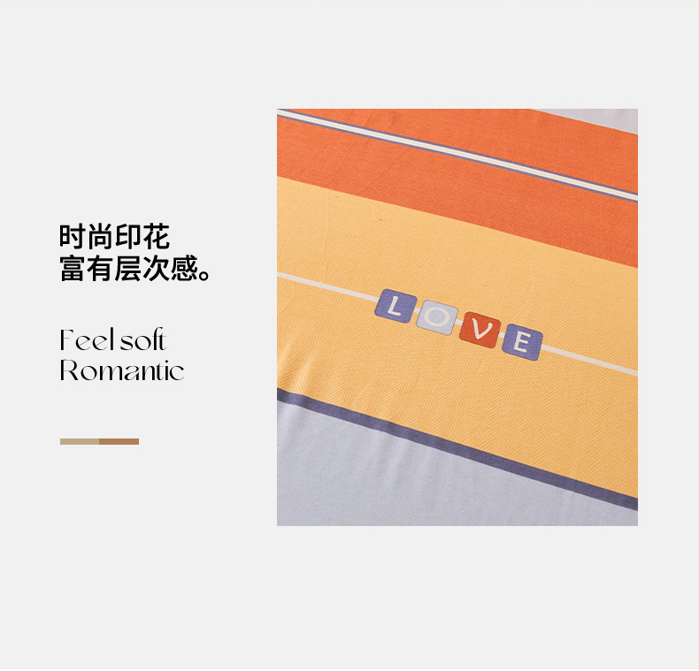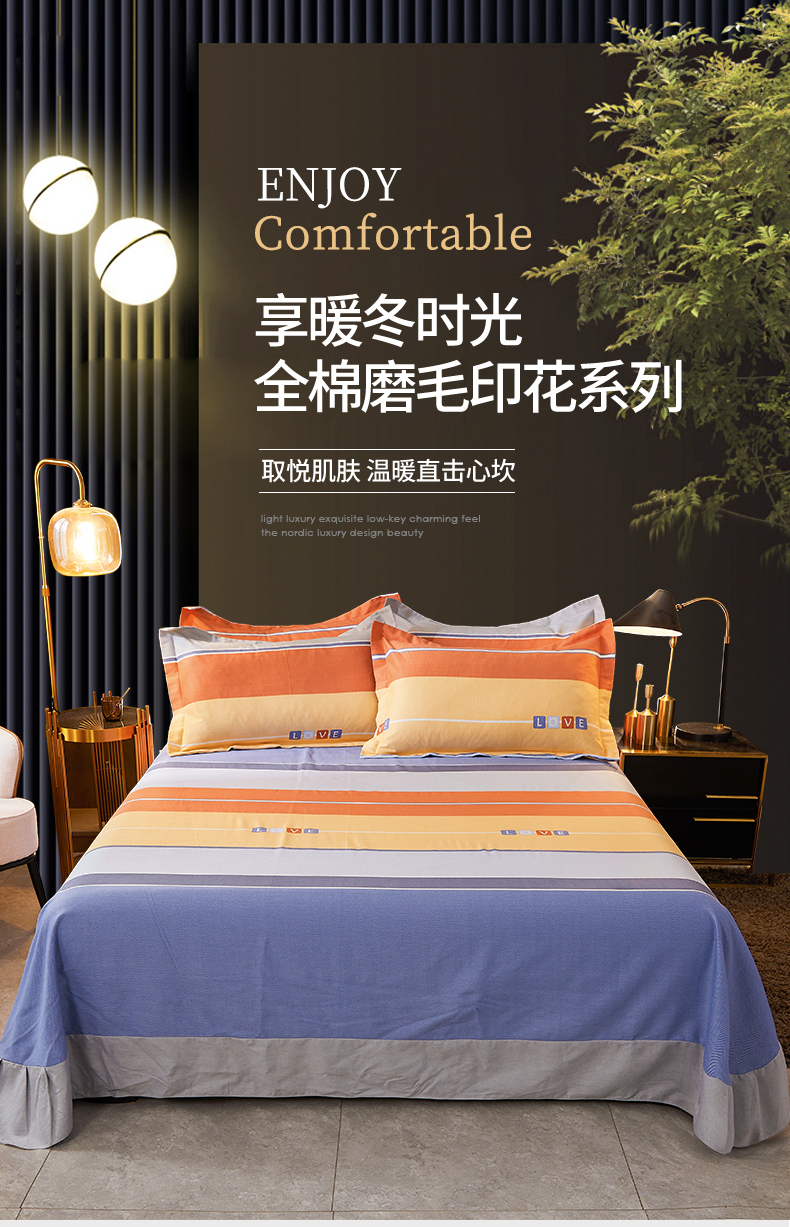• 91家纺网 家纺一手货源 找家纺 伊而梦 2023新款全棉磨毛印花四件套系列单品床单 爱的初心-橘