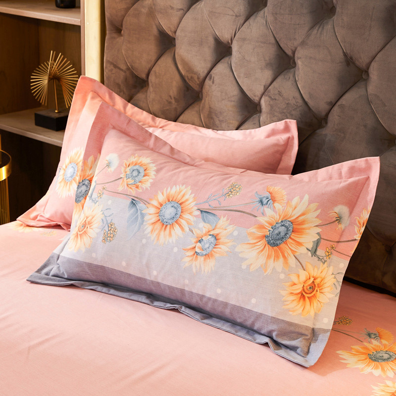 伊而梦 2023新款全棉磨毛印花四件套系列单品枕套 温柔花海-粉